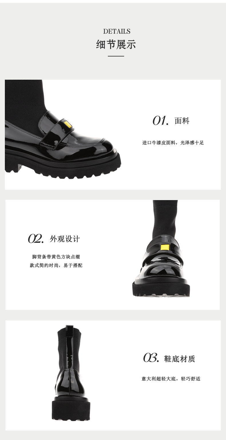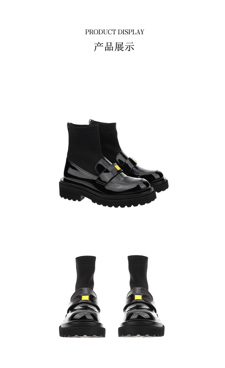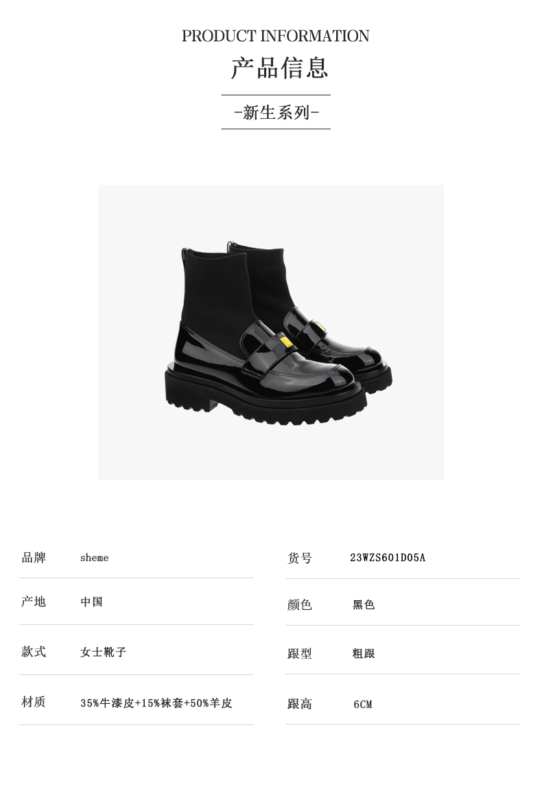 sheme新生系列进口牛漆皮厚底简约时尚女士袜靴可定制