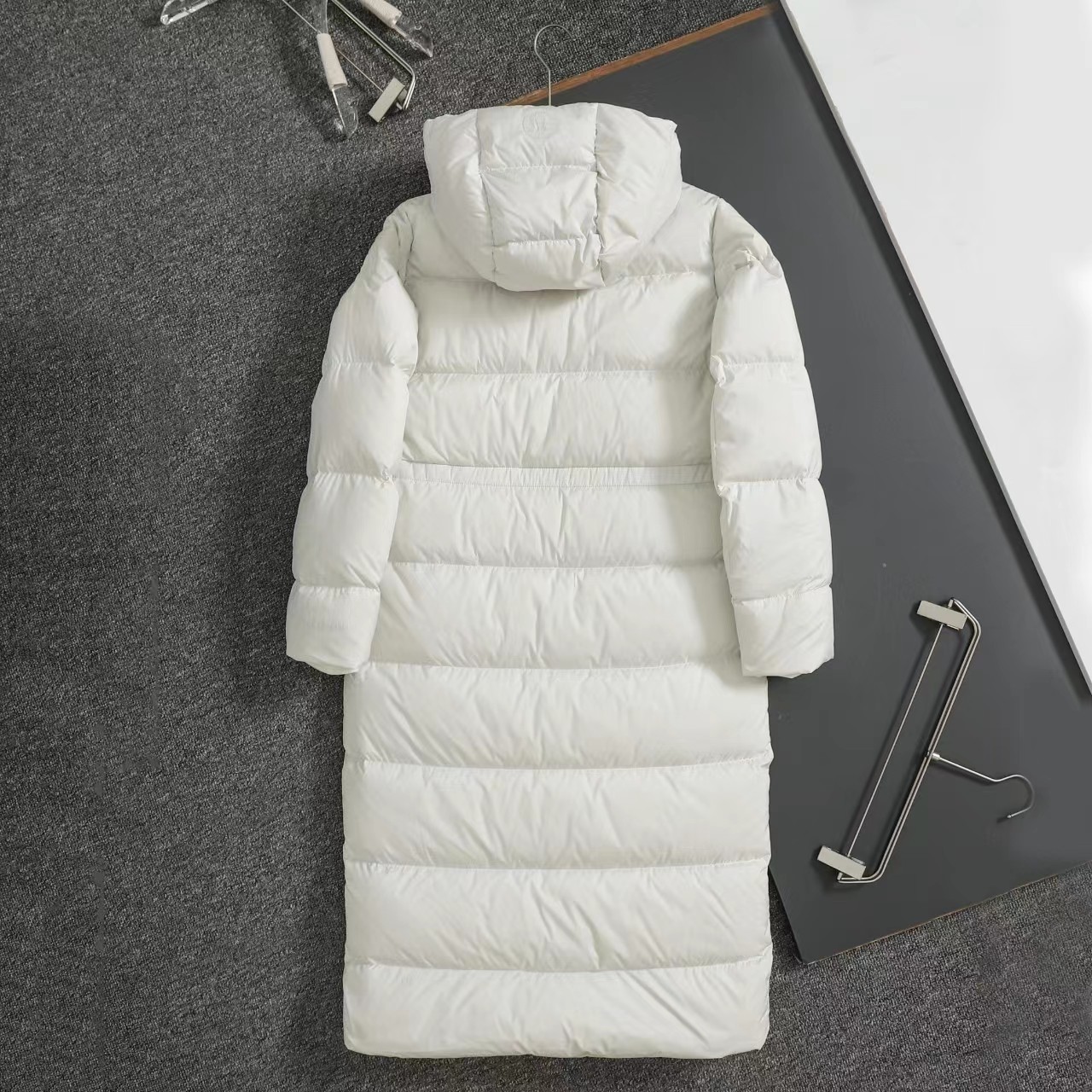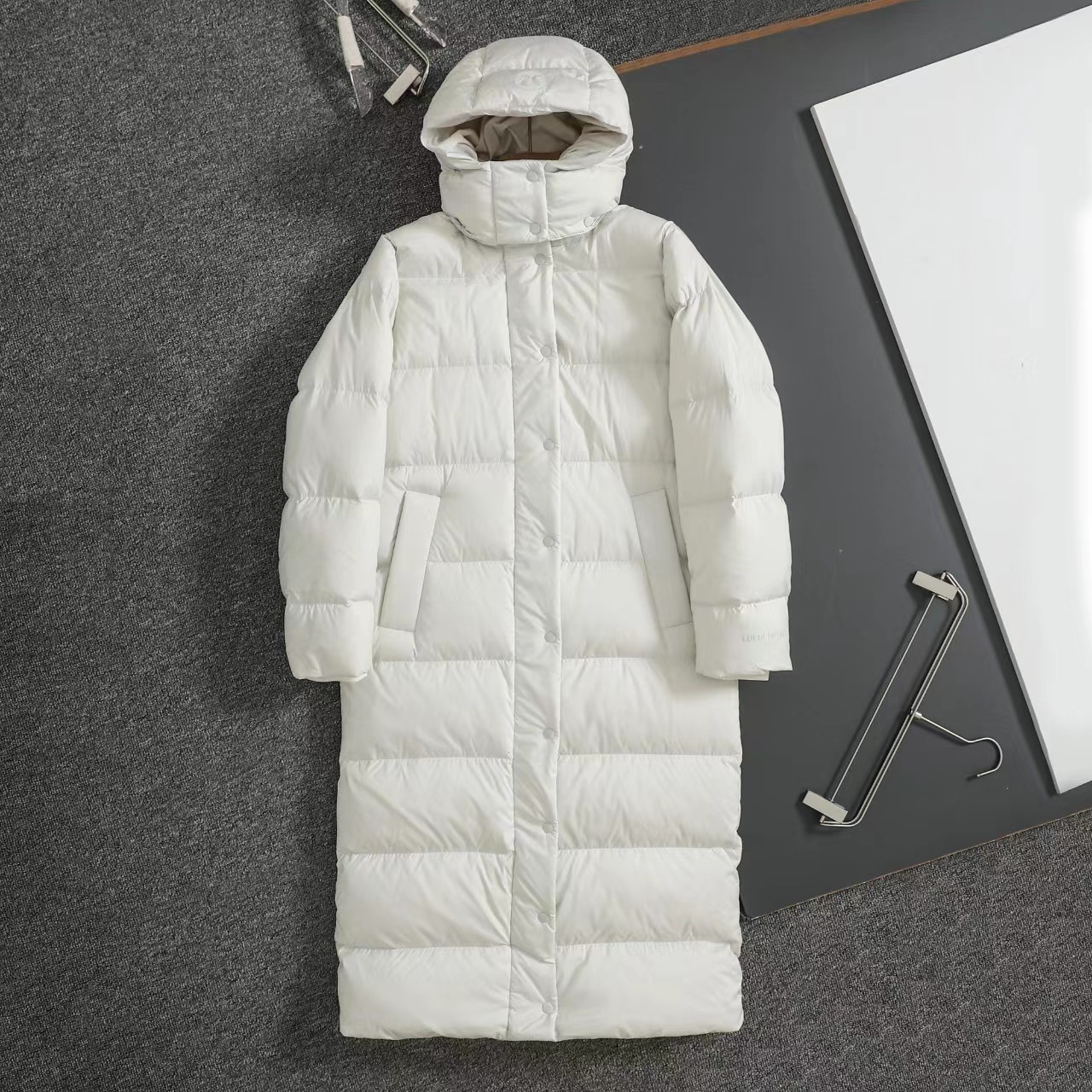 九格长款羽绒服连帽采用SoftMatte面料,三层防风门襟设计,防水挡风效果好。含绒量80%鹅绒填充,充绒量300g以上,600蓬松度,轻盈保暖不厚重。可拆卸连帽设计,腰身可调节,下摆收紧设计。外侧拉链口袋,内侧隐藏式手机袋,细节贴心。这个冬天,告别臃肿!解锁360°无死角的温暖与风度。