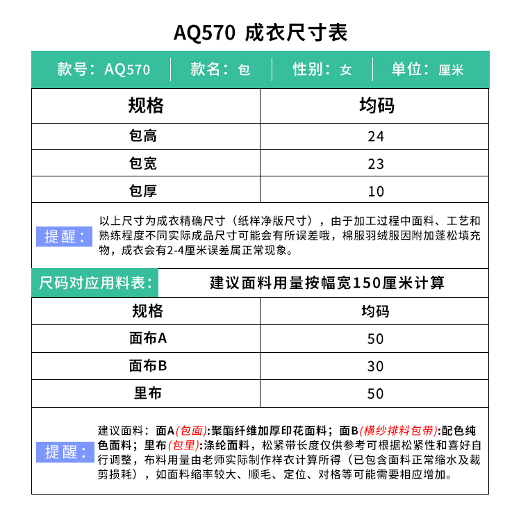 裁缝学苑AQ570帆布小背包双肩包纸样女装书包服装打板图纸