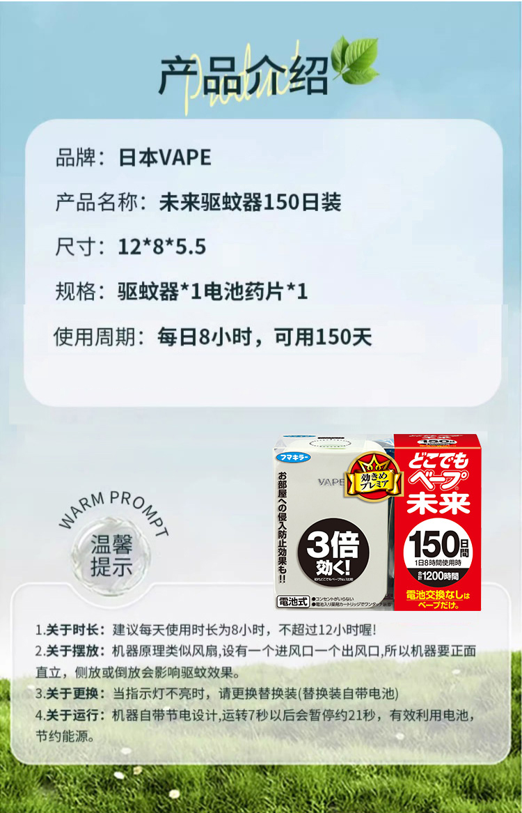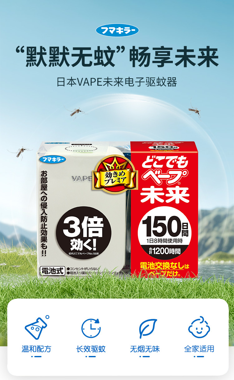 【春上新】9楼母婴生活馆 日本VAPE未来电子驱蚊器室内150日防叮咬婴儿静音无味便携式防蚊 活动价:89.9元