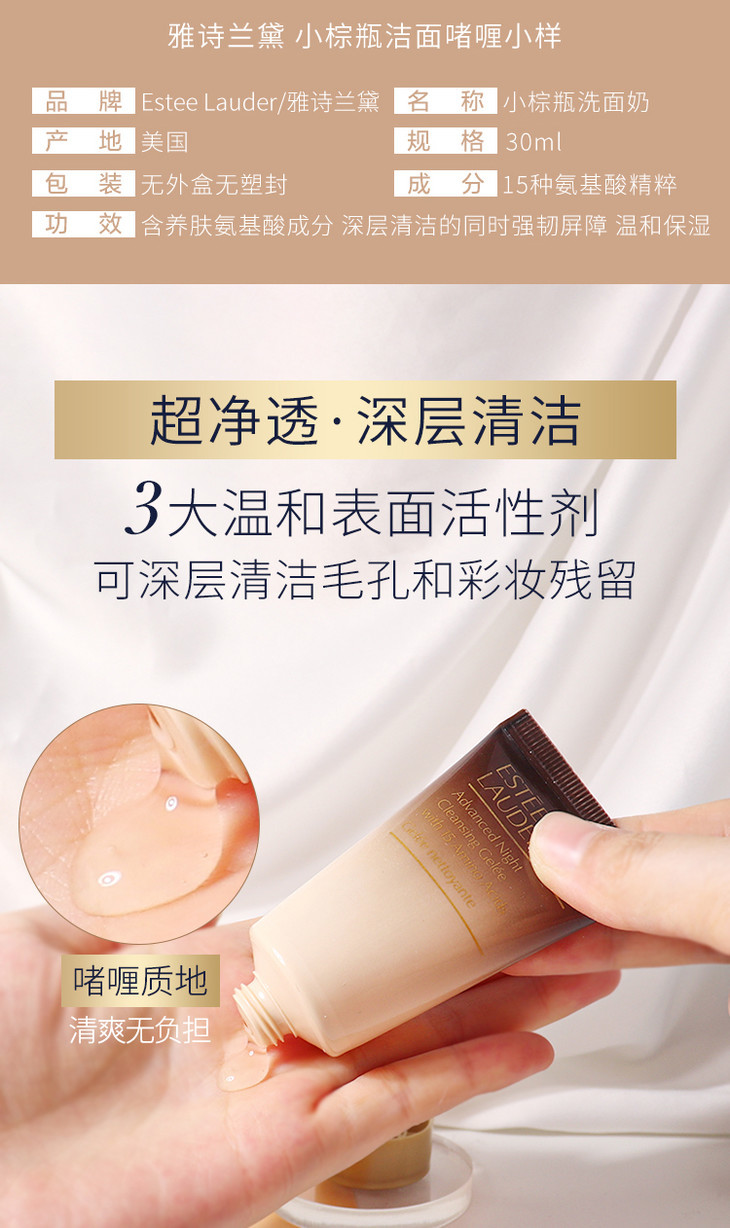 中小样▲雅诗兰黛小棕瓶氨基酸洗面奶 小样30ml