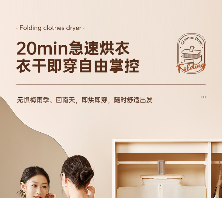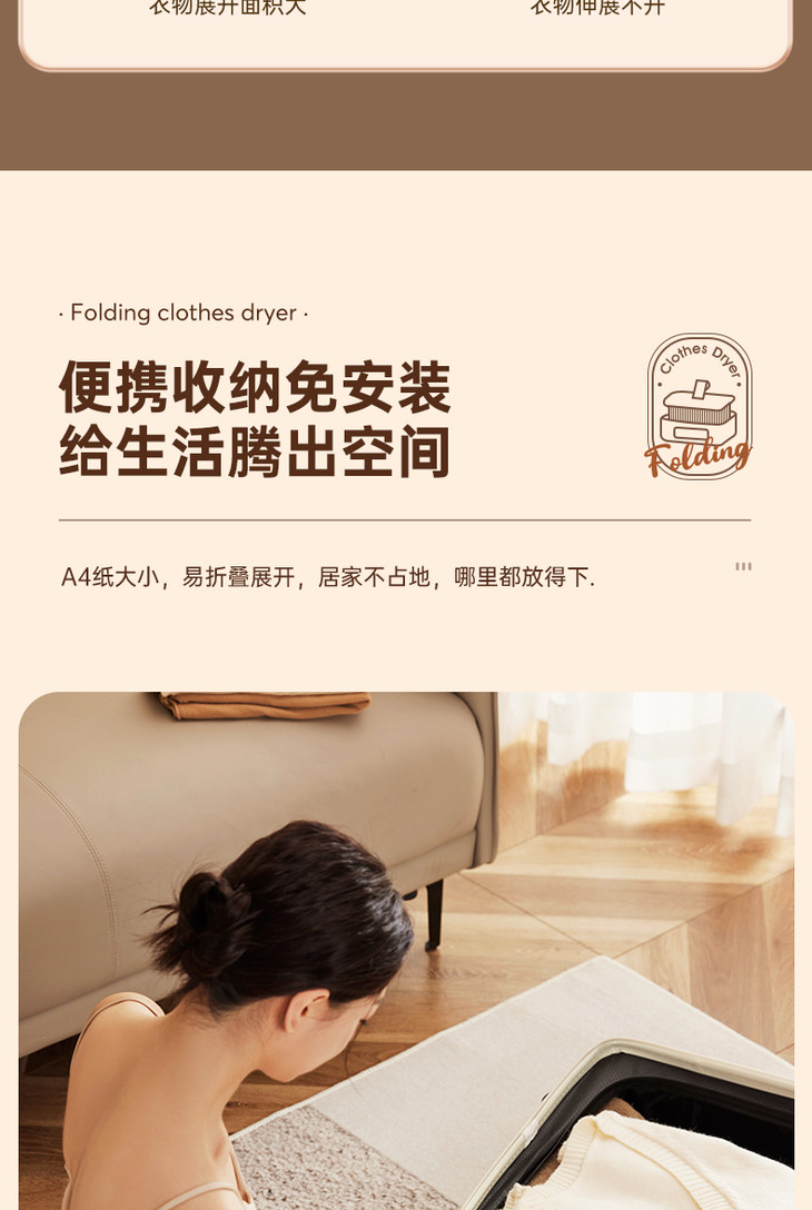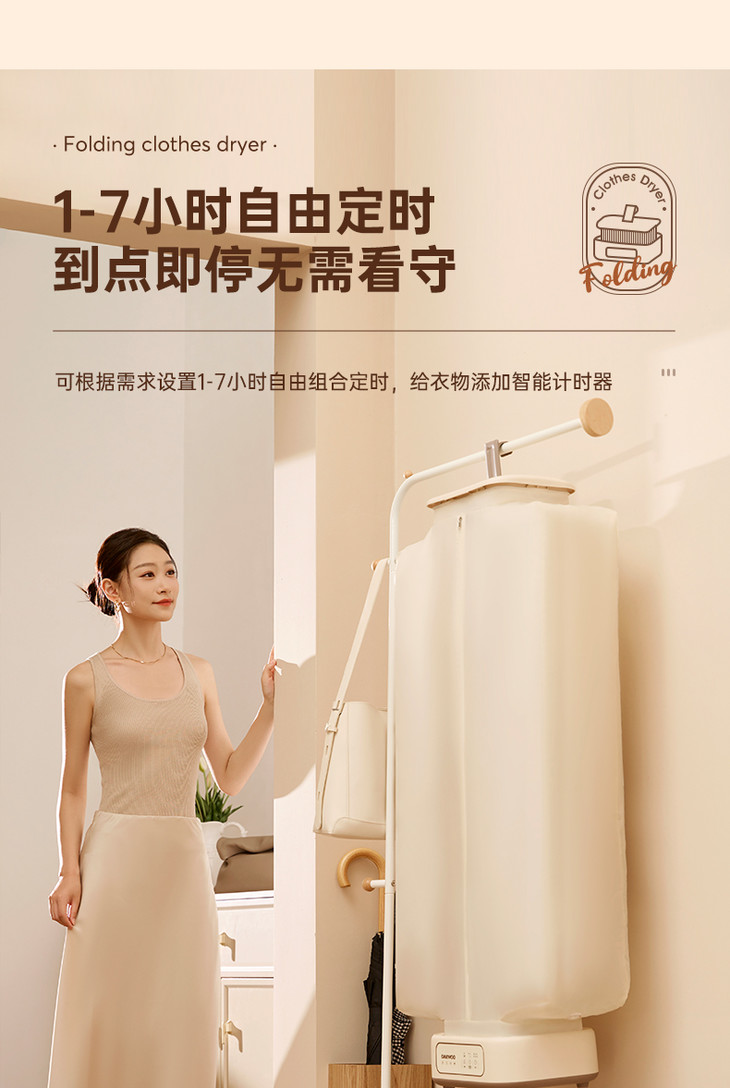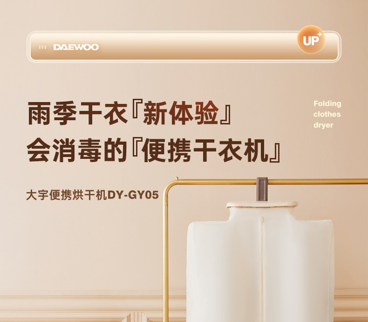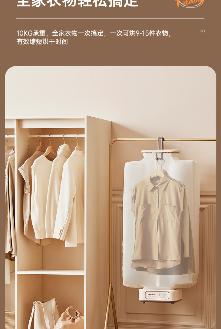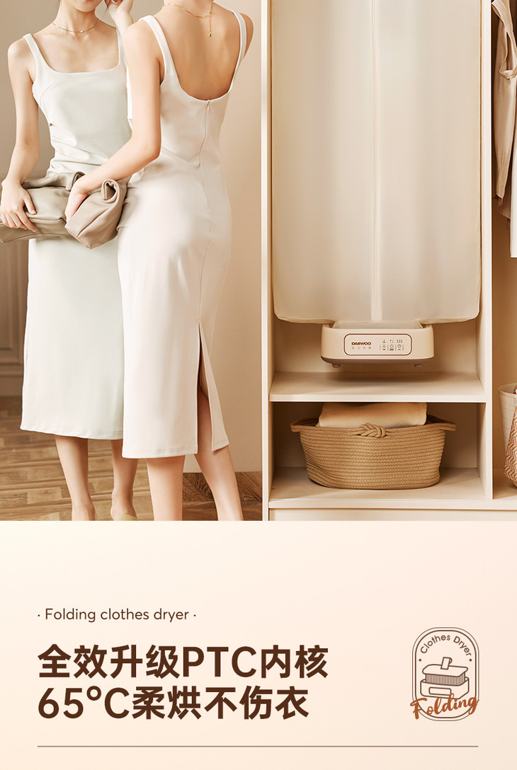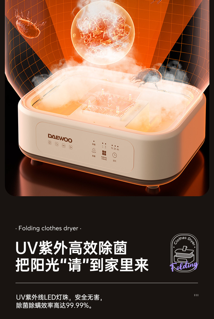 [屁侠推荐]大宇折叠干衣机 A4纸大小 加宽布罩 UV紫外65℃抑菌除螨 2档可调 3D循环烘干 1-7小时自由定时 轻音底噪 易折叠展开 出差/旅行可带