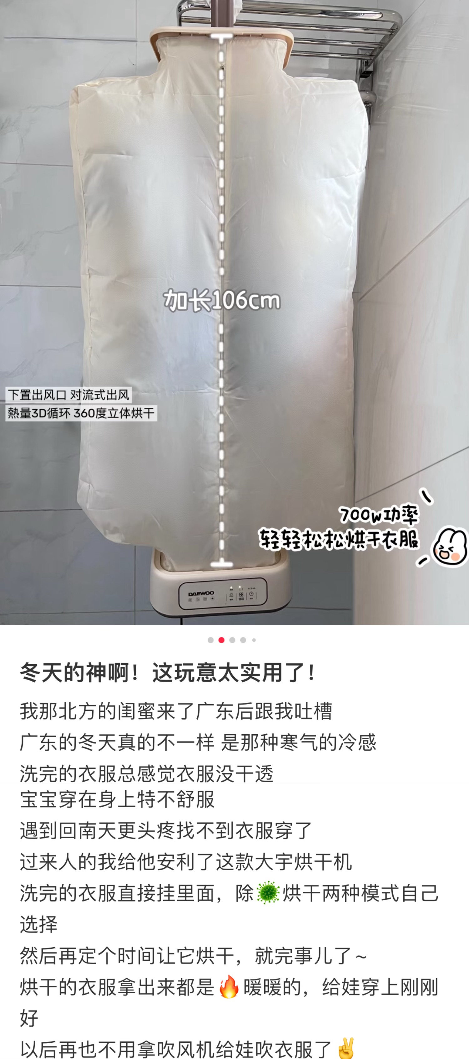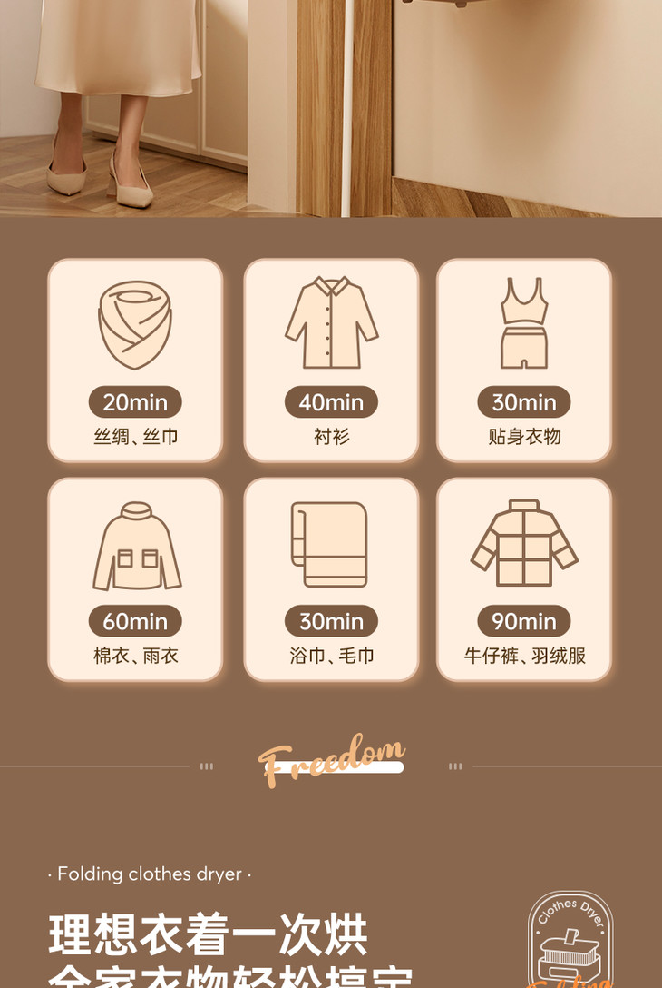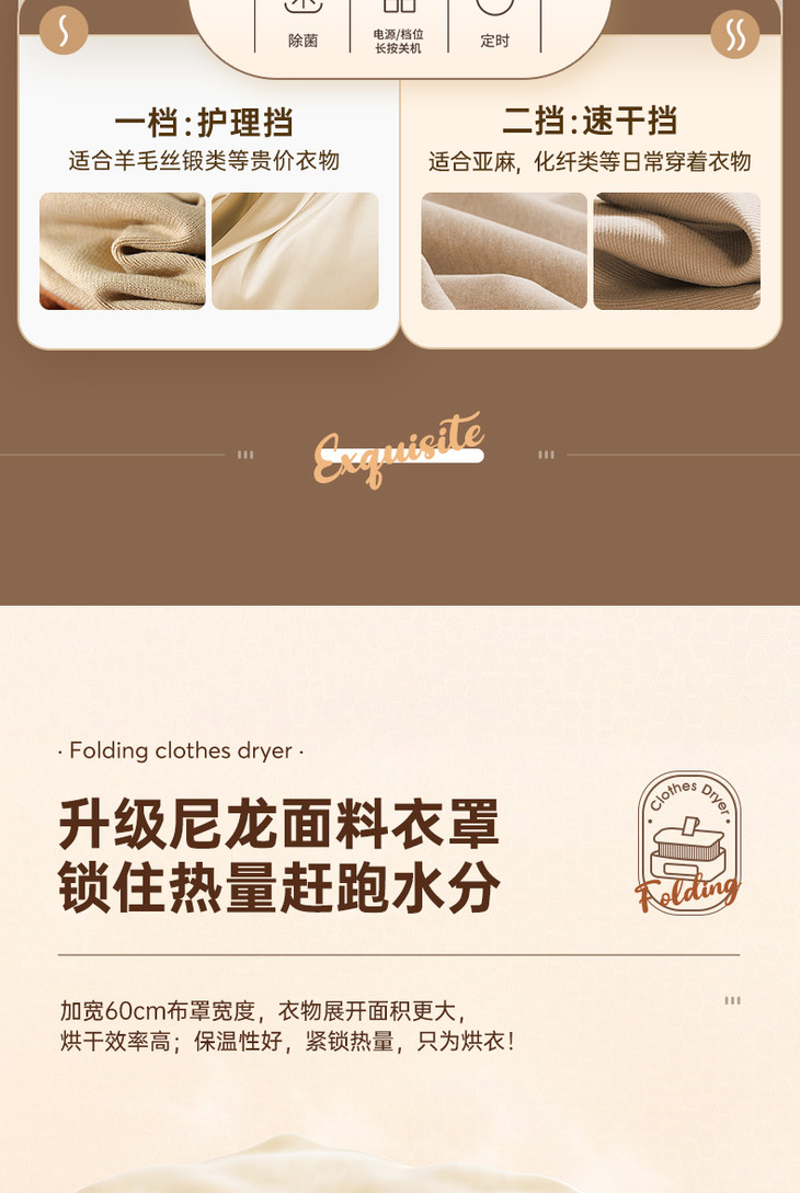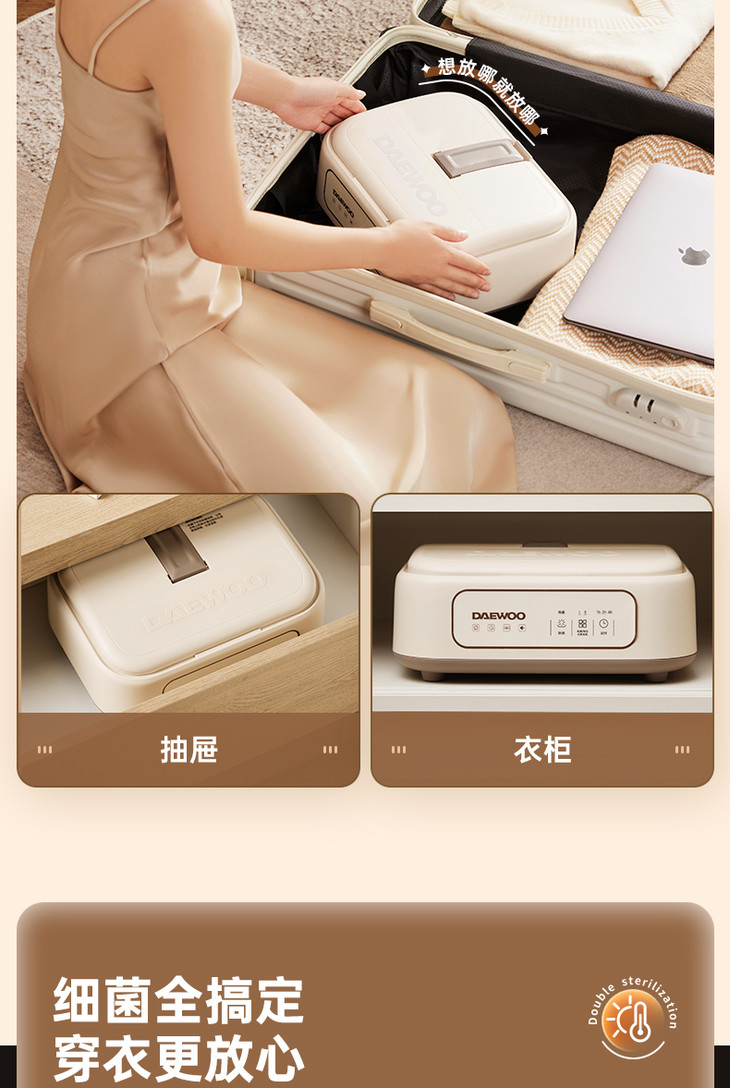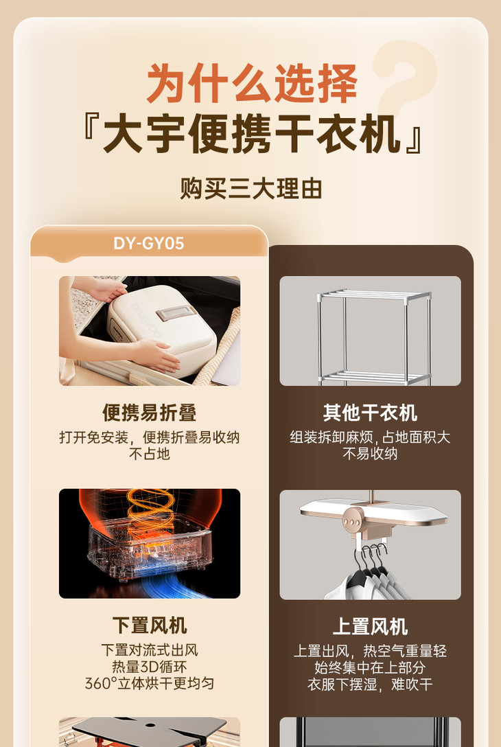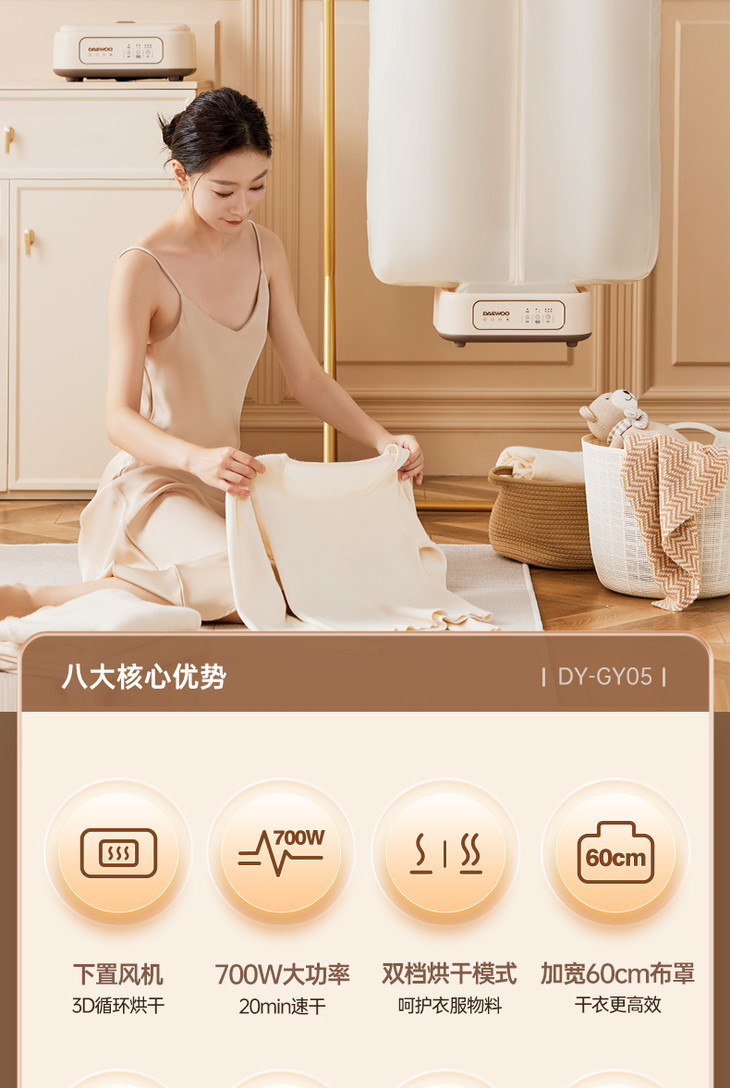 [屁侠推荐]大宇折叠干衣机 A4纸大小 加宽布罩 UV紫外65℃抑菌除螨 2档可调 3D循环烘干 1-7小时自由定时 轻音底噪 易折叠展开 出差/旅行可带