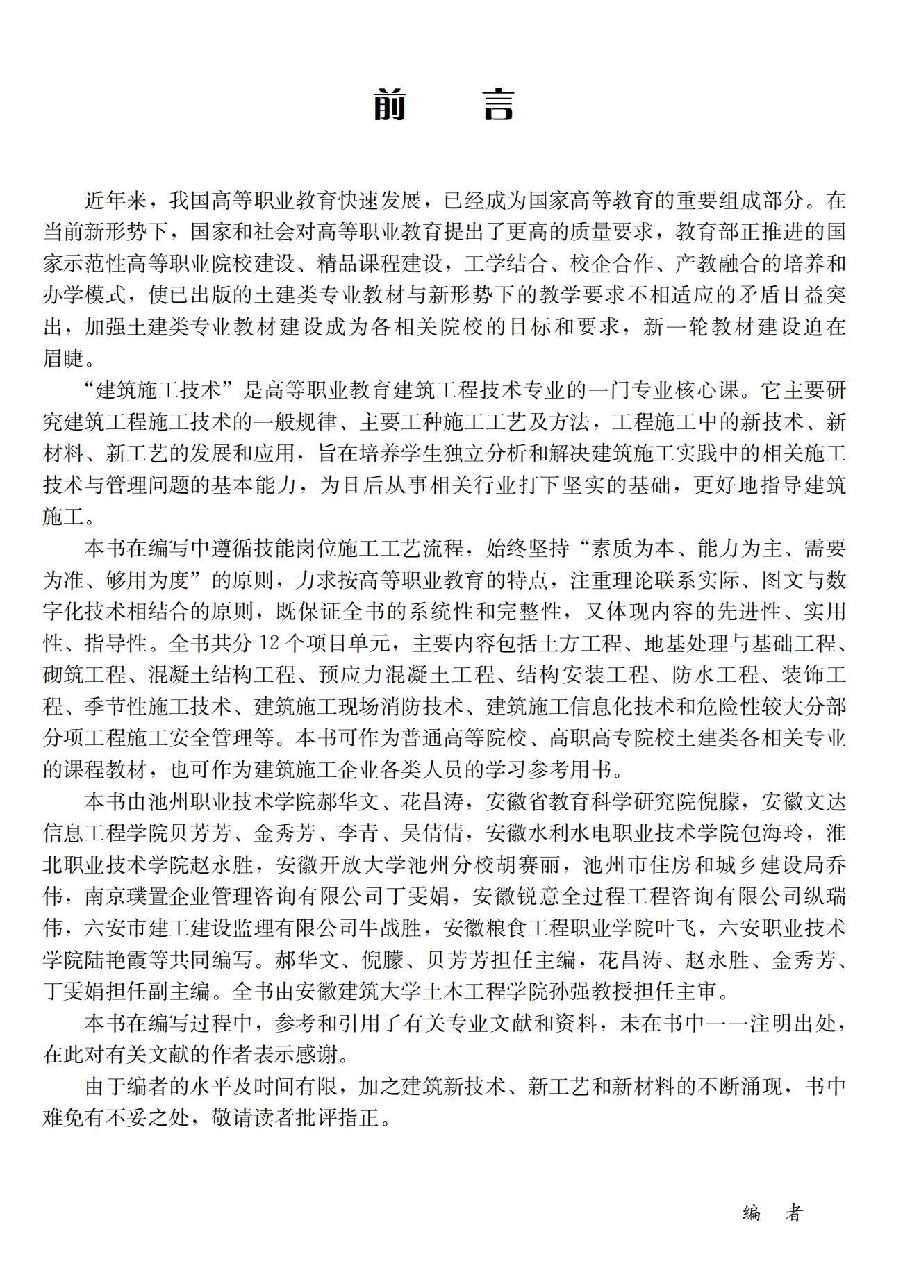 建筑施工技术/郝华文,倪朦,贝芳芳主编:中国建材工业出版社,2025 ISBN 9787516040867