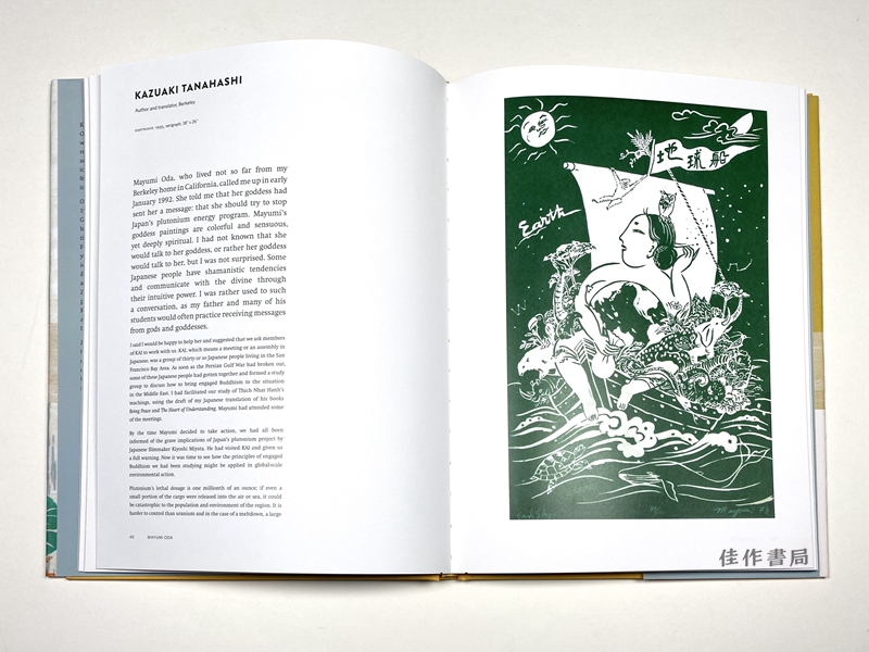 Mayumi Oda's internationally-recognized artwork plays with traditional Japanese and Buddhist images, refiguring them as celebrations of the feminine and the natural world. Where most traditional Buddhist iconography features male figures, Oda introduces female "Goddesses" that seem to jump off the page, imbued with the vibrancy of Oda's color and line.