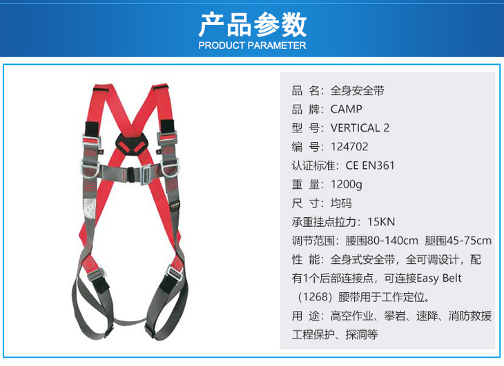 全身衣意大利Camp坎普1247安全带户外拓展训练道具高空作业保护带