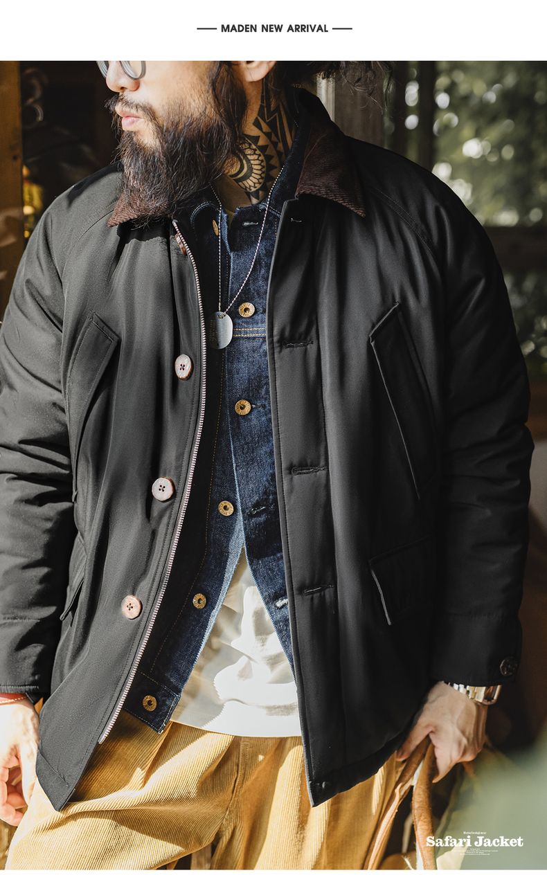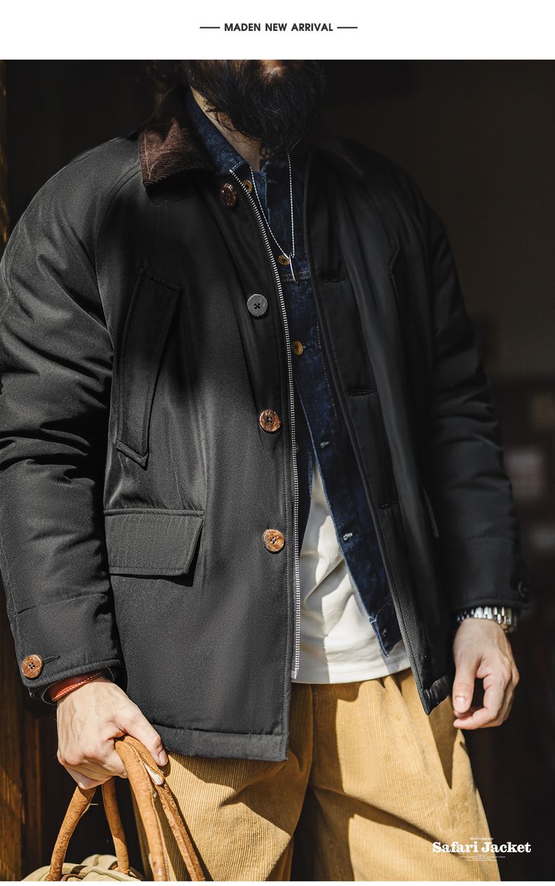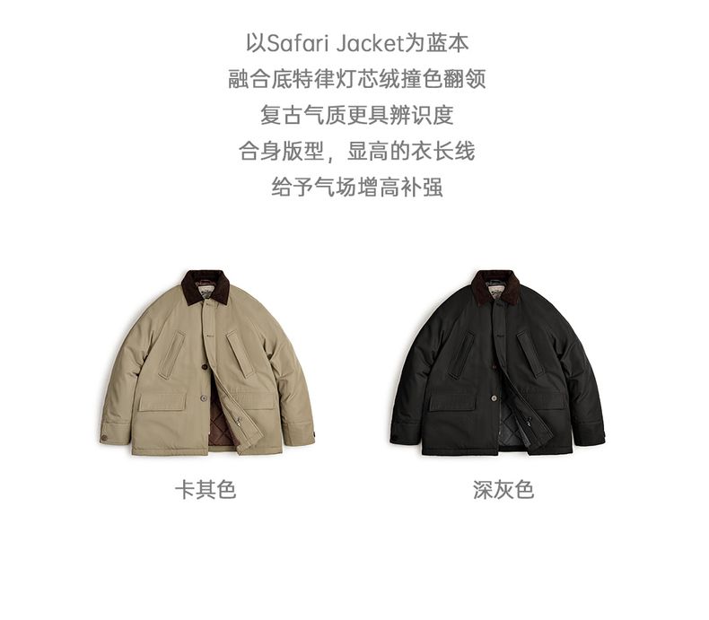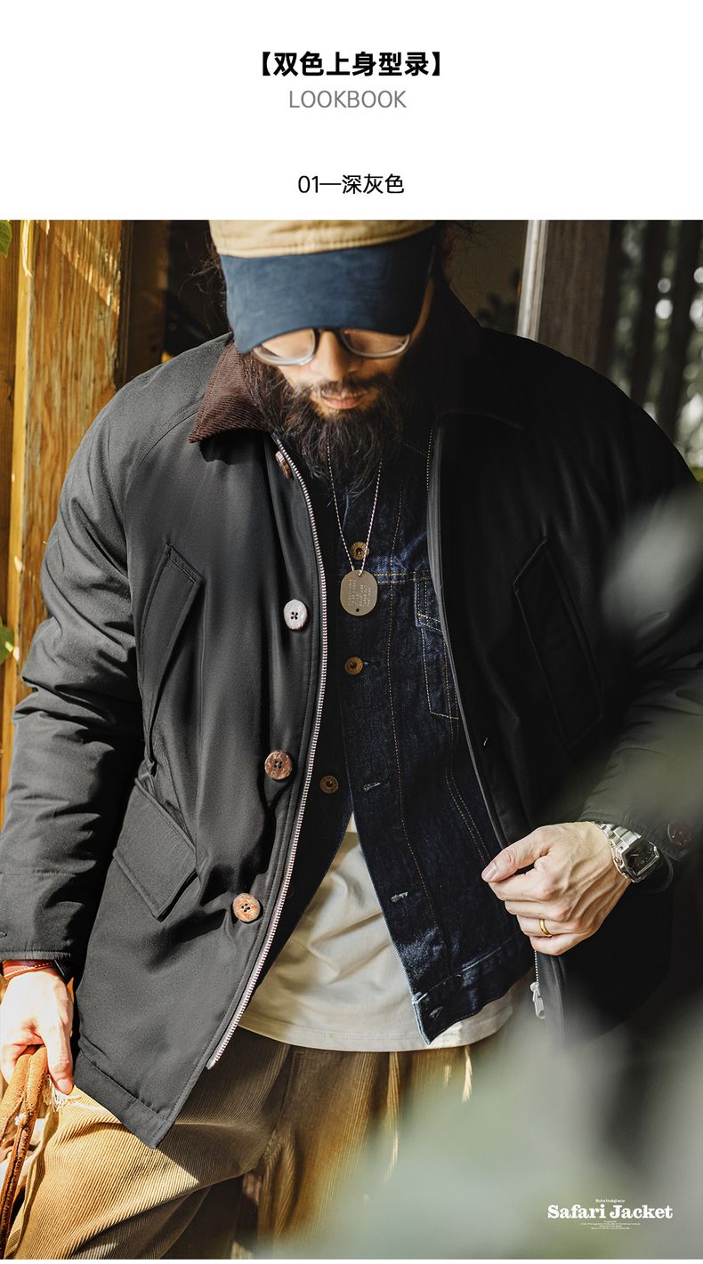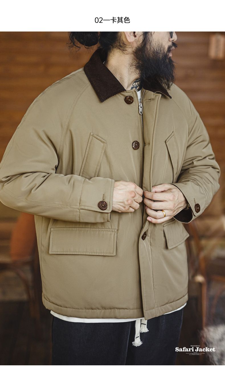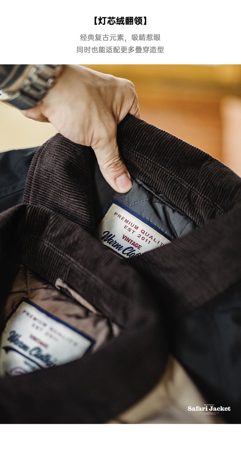 工装优选美式复古Safari猎装夹克棉服翻领加厚保暖棉衣外套男秋冬