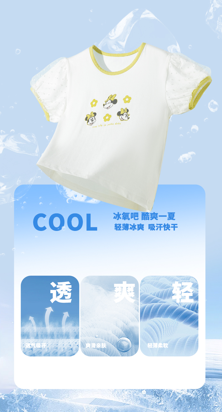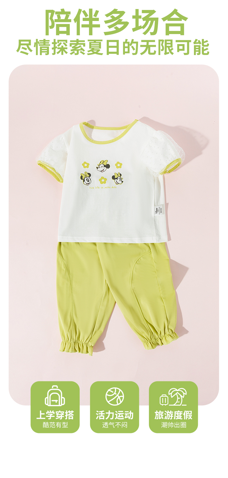 迪士尼【米妮凉感T恤防蚊裤套装】25春夏新款冰感透气短袖宽松休闲裤ZD2ET002
