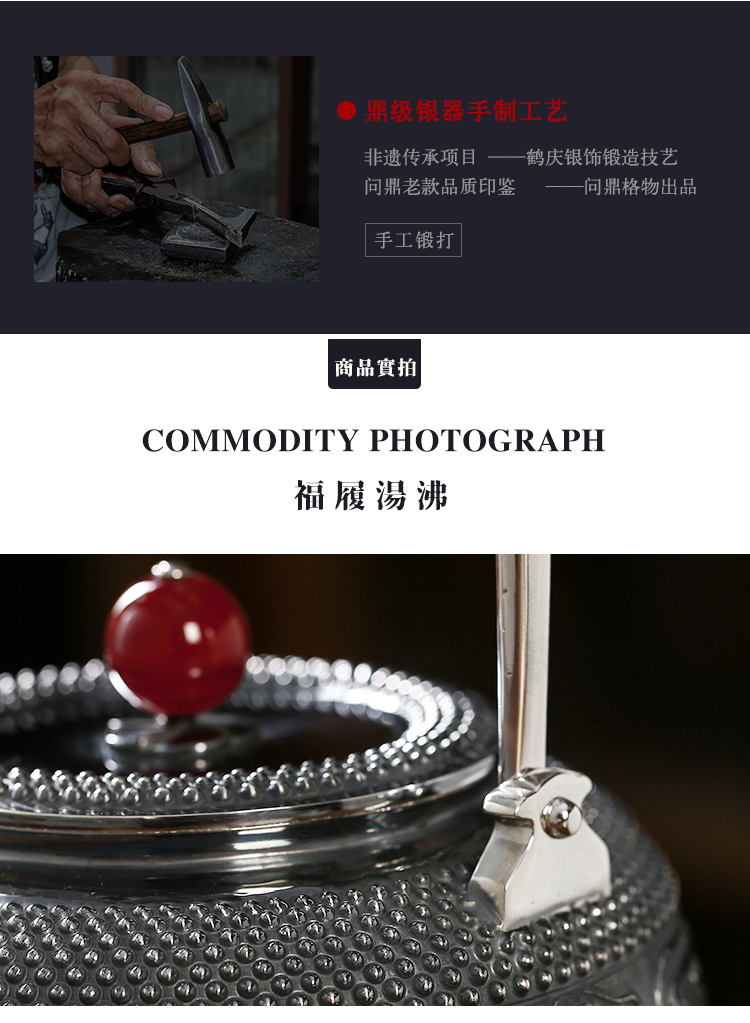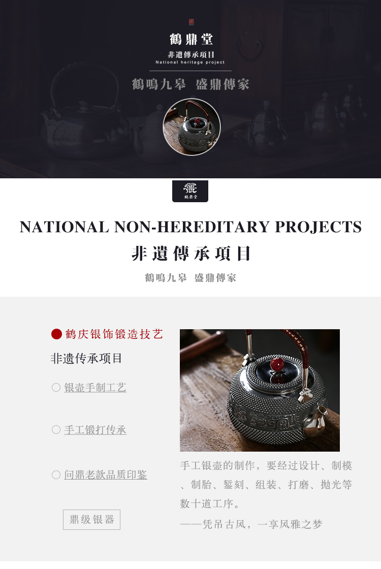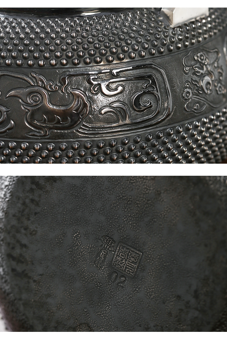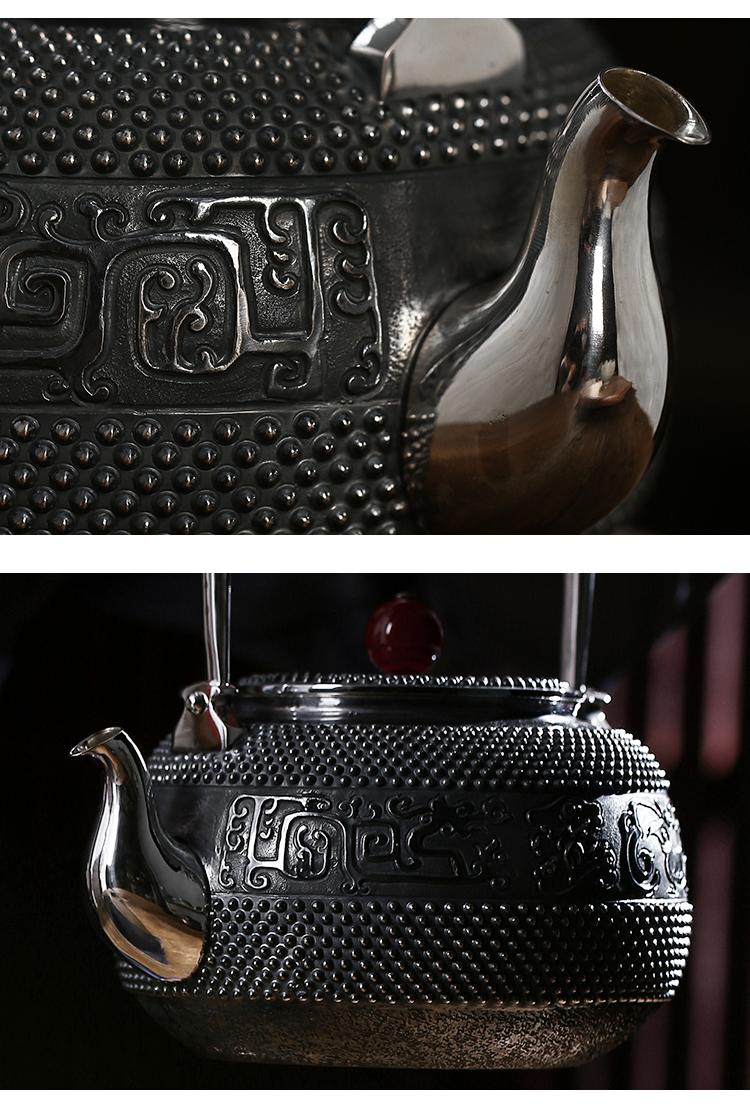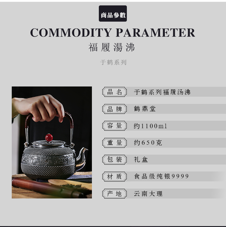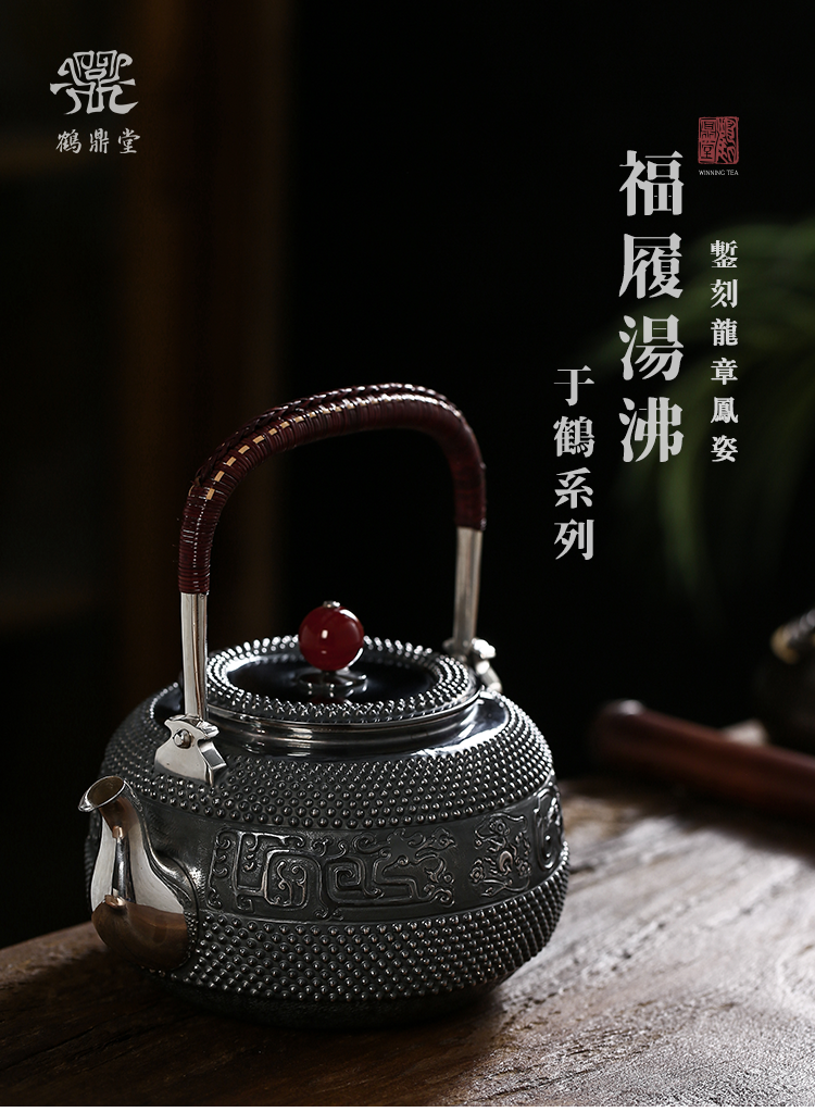 鹤鼎堂 于鹤系列福履霰纹汝钉汤沸錾刻龙章凤姿银壶(缺货)