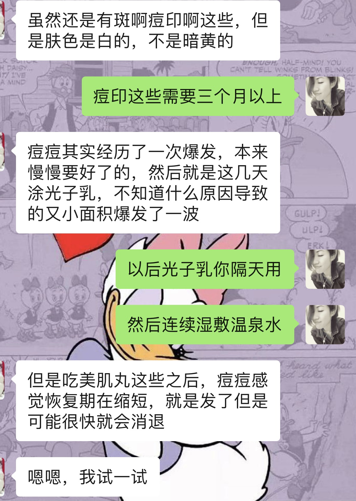 我在一个品牌方建立的内测群蹲了几个月,总结了以下几方面的显著改善:痘痘变少痘印变浅,痘痘恢复速度加快,反反复复不消的痘痘终于有了转机。毛孔细腻、拯救暗沉、变白通透、红血丝减少、以上这些变化通常吃个二十来天,大约一盒的量就能感受到。还有更猛的,比如改善带状疱疹、淡雀斑,淡化黄褐斑皮肤呈现水光感,这些情况连续吃2-3个月都有明显的对比差异。