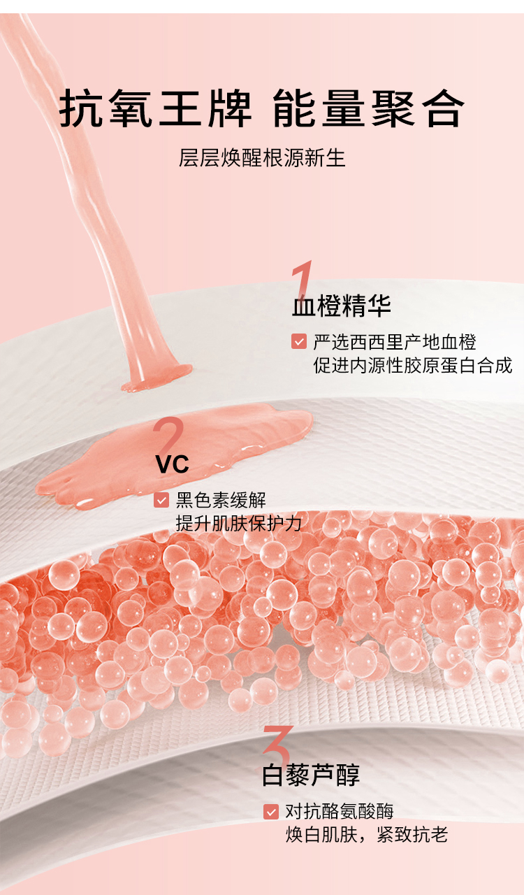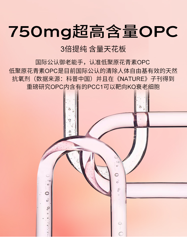 划重点:因此可以做到一粒美肌丸里面有500mg的OPC+300mg的血橙精华+50mg的维生素c+25mg的白藜芦醇。