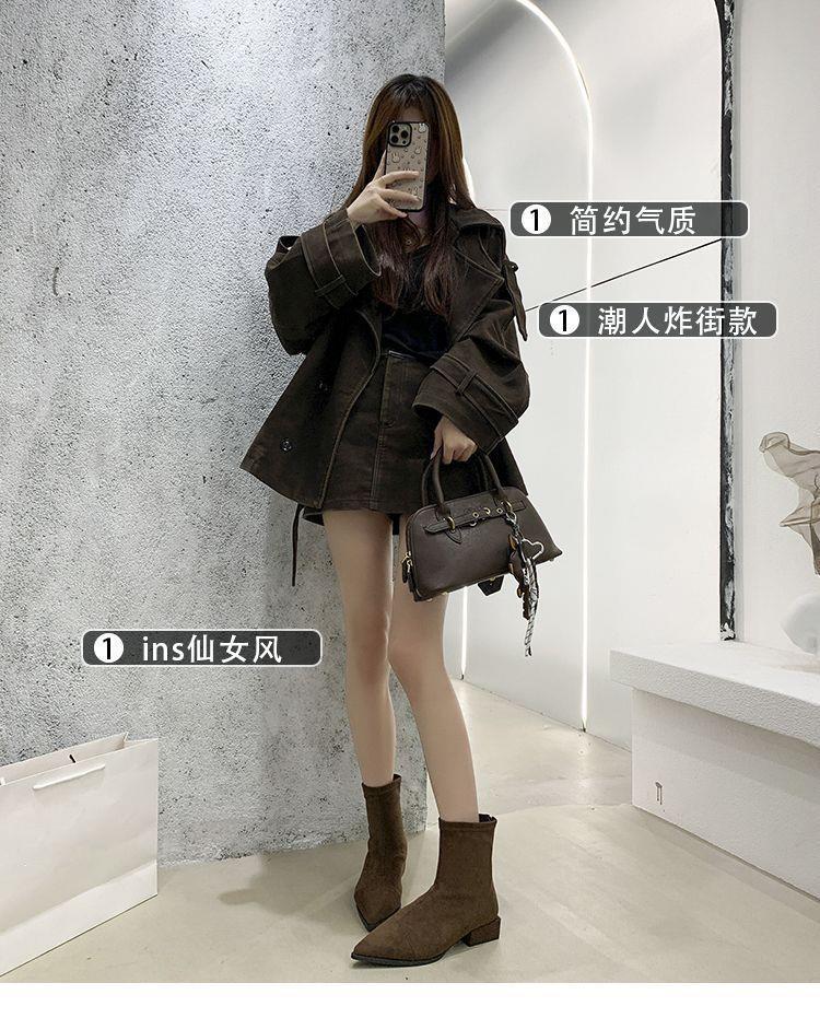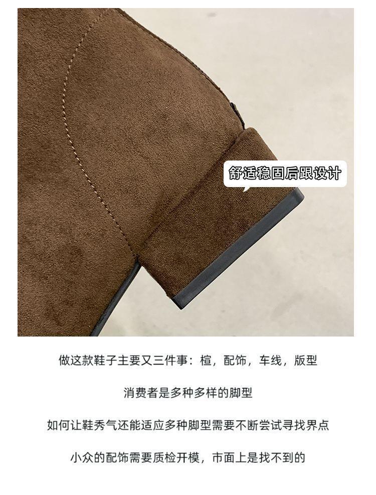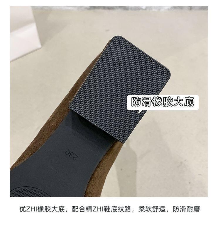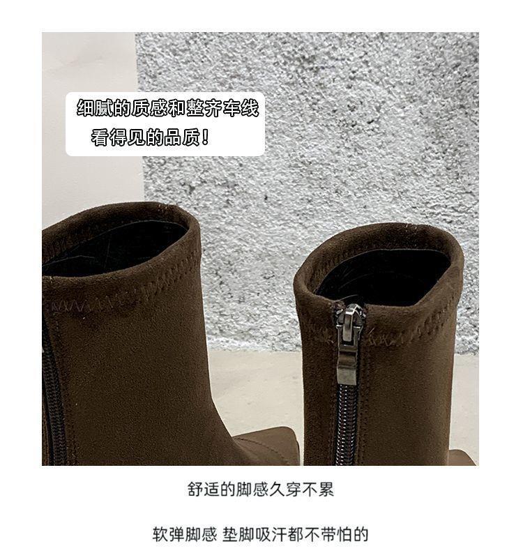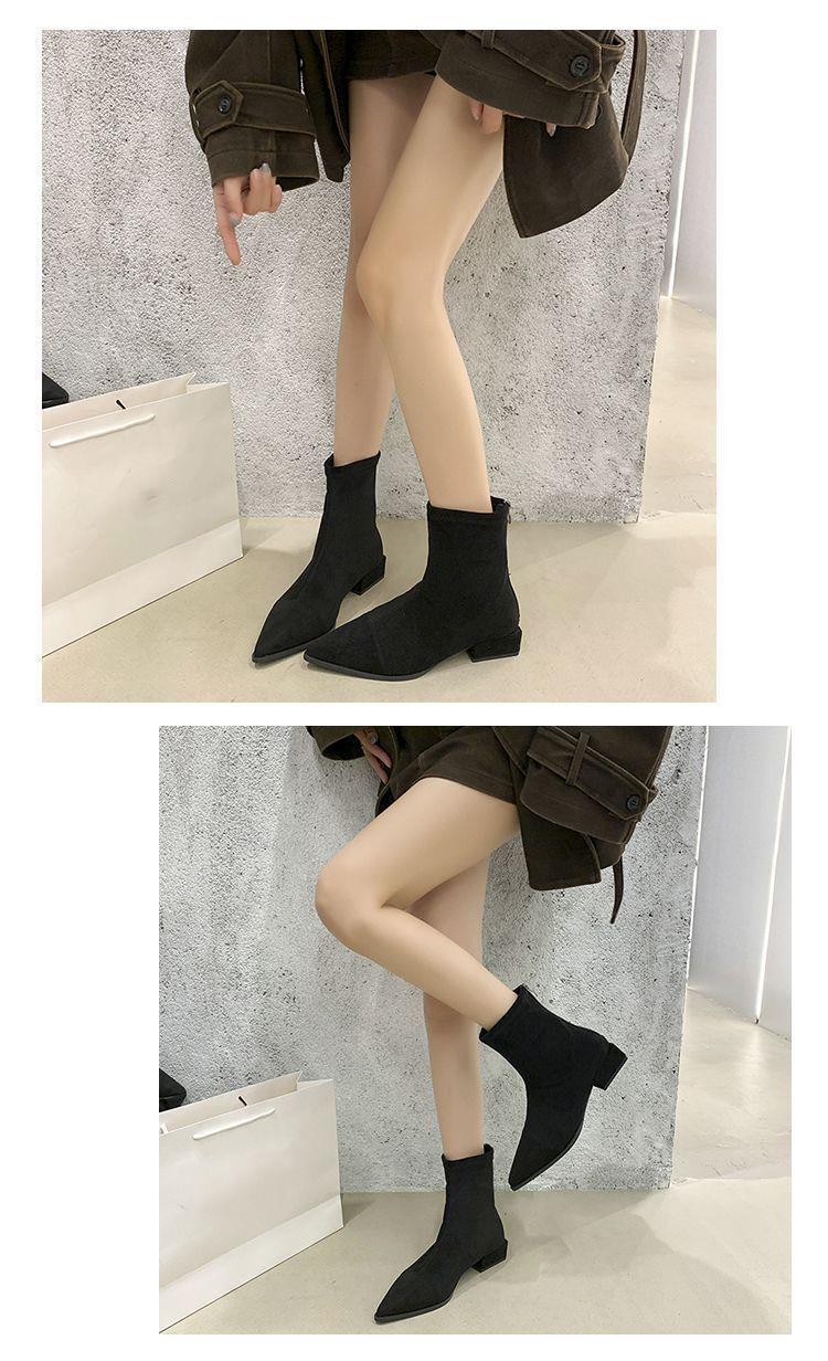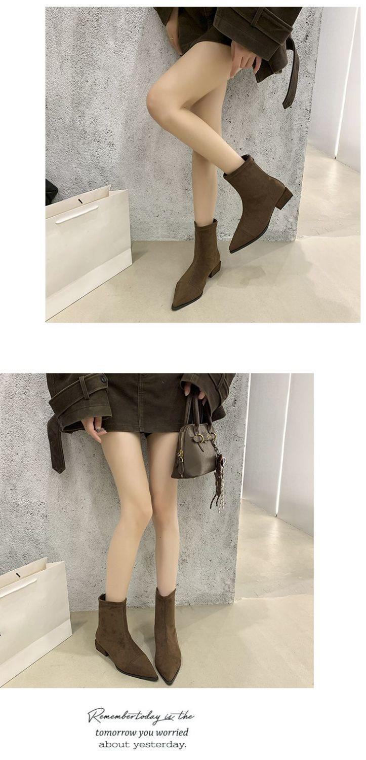 法式后拉链裸靴平底尖头短靴子时尚显瘦弹力瘦瘦靴秋冬新款35-40
