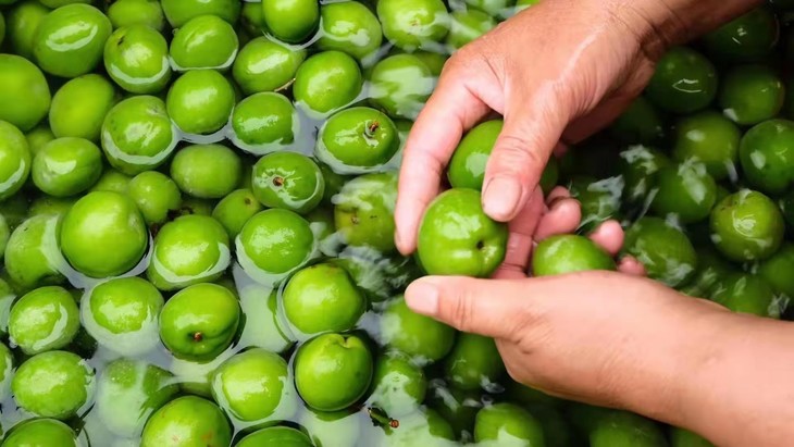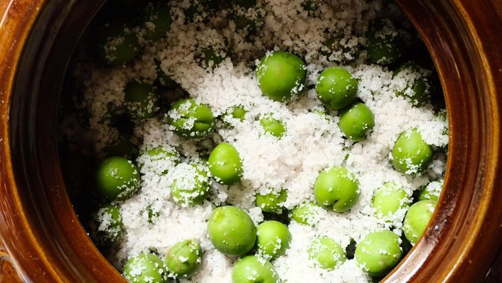 每年四五月份,仙娘溪村民将从山上摘回来的青梅精挑细选,挑出个大肉厚的完好青梅,用水细细清洗并精心挑出果蒂,之后将梅子逐粒擦干水分,和粗盐一起放入瓦缸,腌制数月。