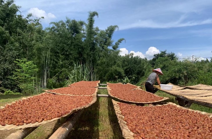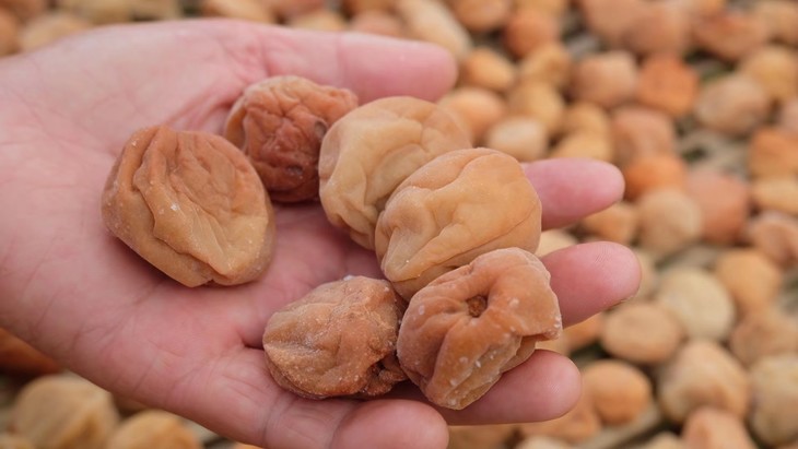 腌至七八月份,趁着阳光最是灿烂,天朗又气清,便将缸里的梅子捞出,过水后,放在竹匾上面晾晒几天,中间还需要将梅子翻面晾晒,确保晾晒均匀。