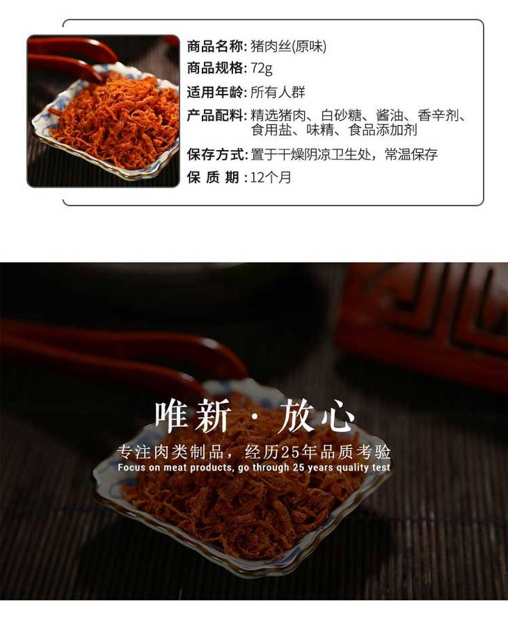【休闲食品】唯新 72g原味猪肉丝*3袋装