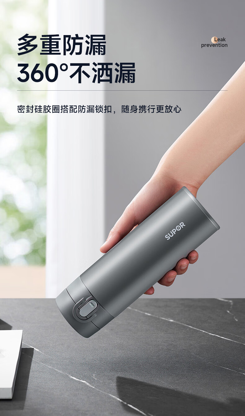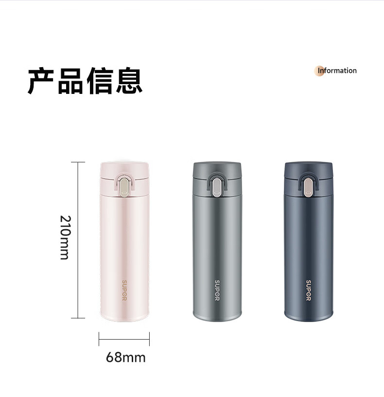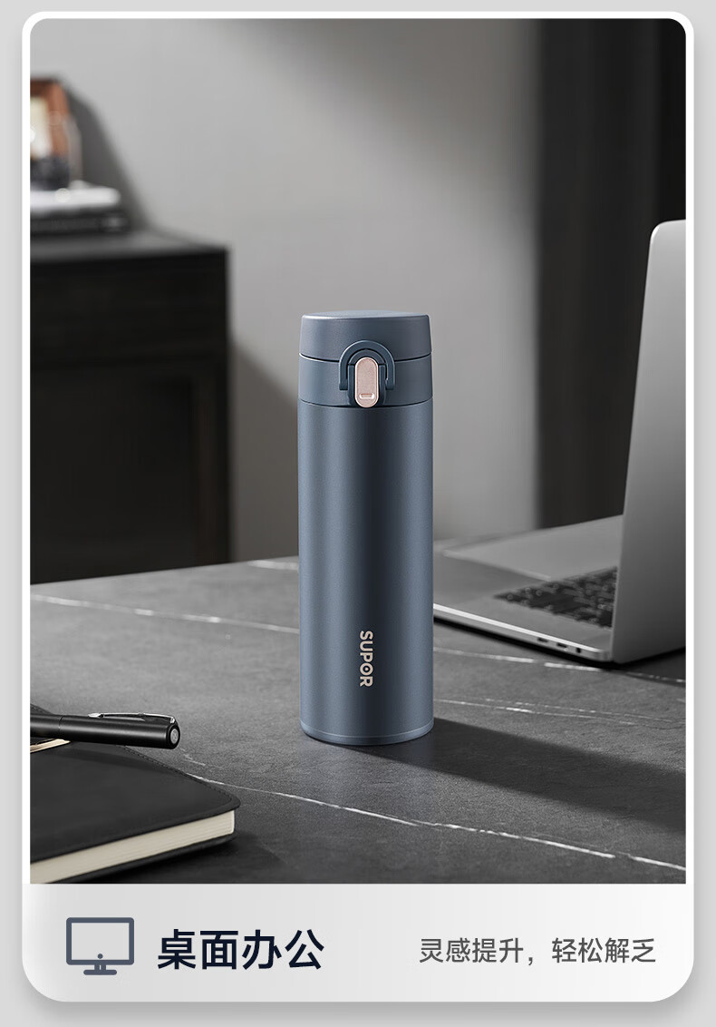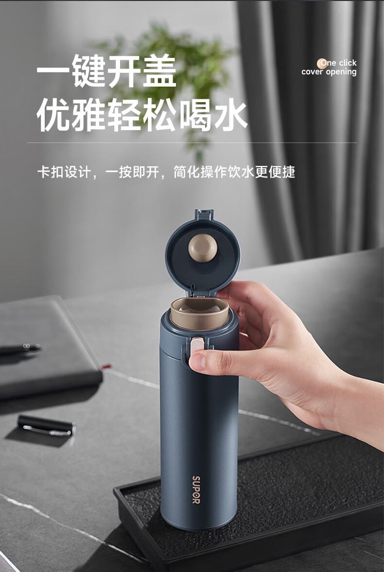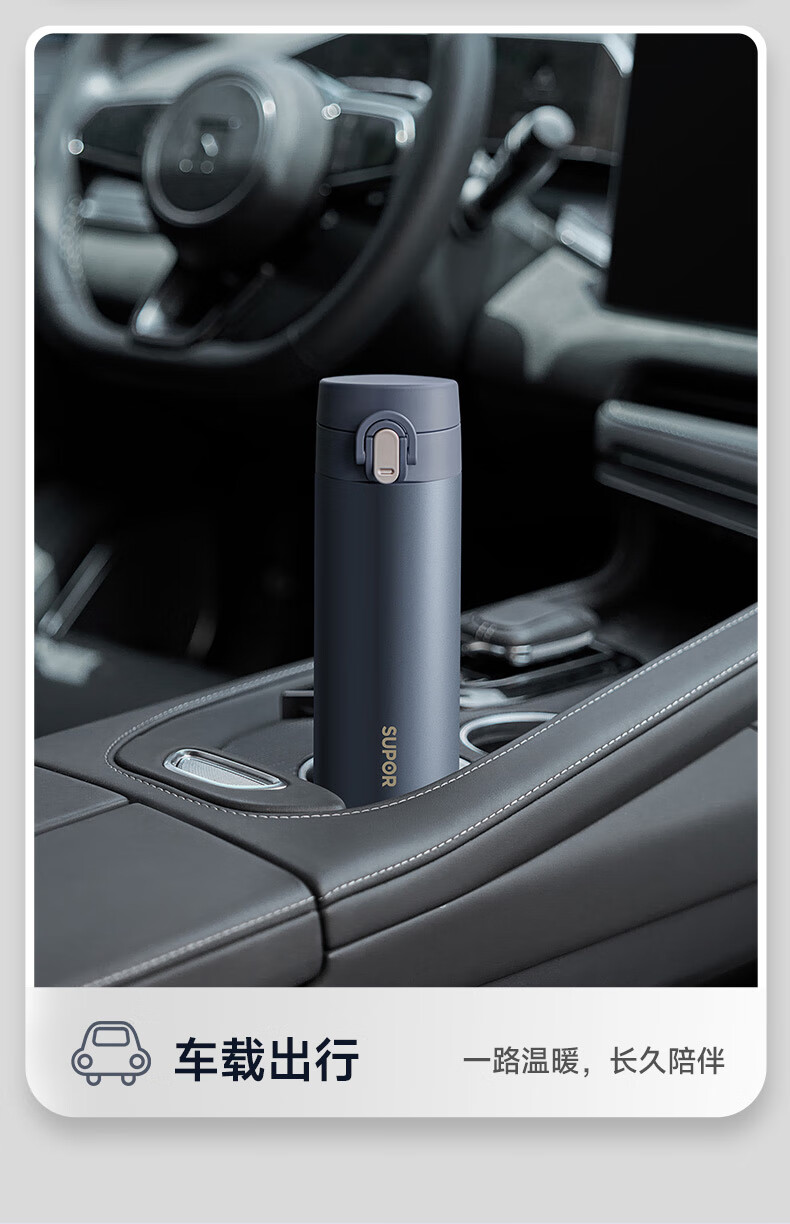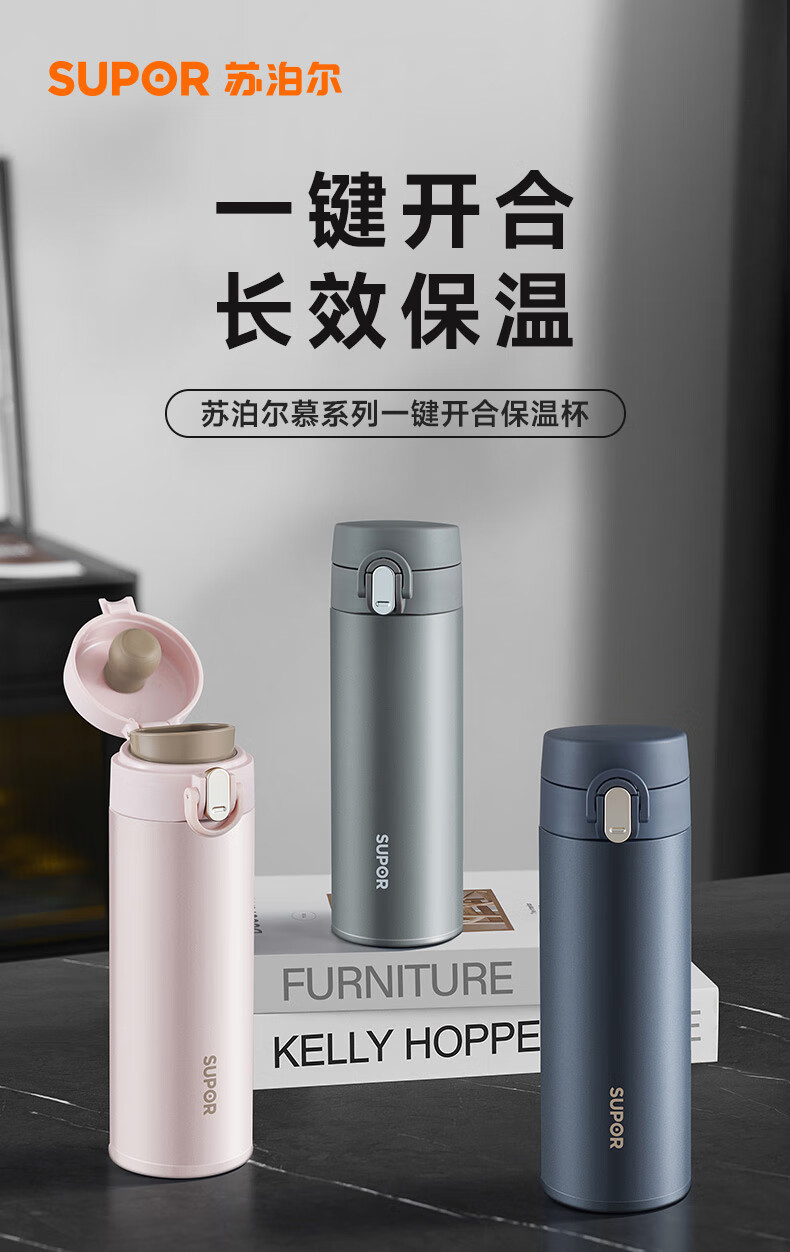 苏泊尔(SUPOR)保温杯316L不锈钢保温杯一键弹盖车载水杯 薄雾粉 450ml AZ20