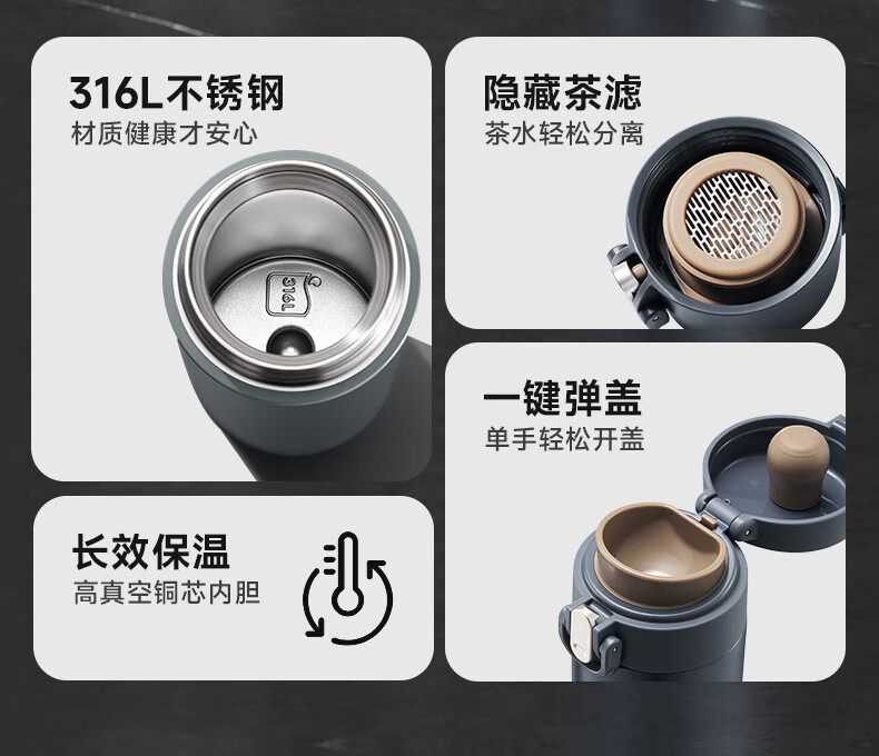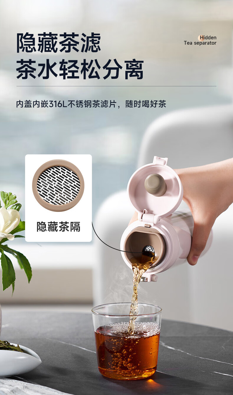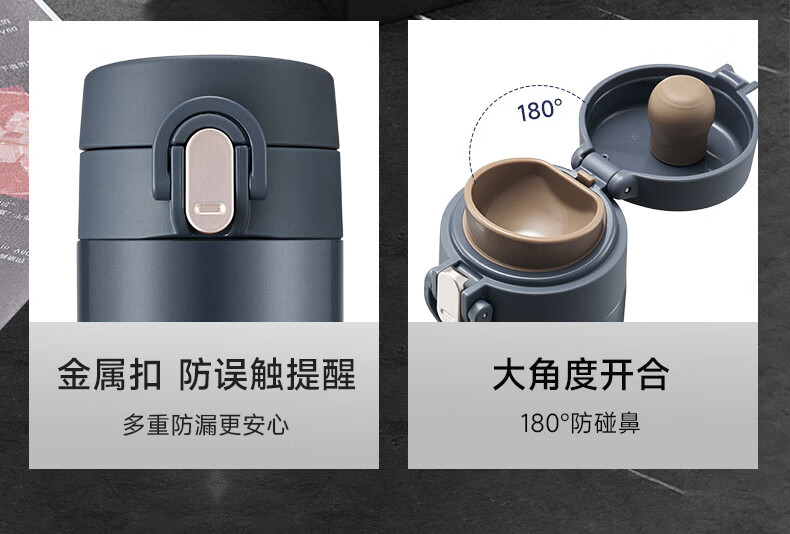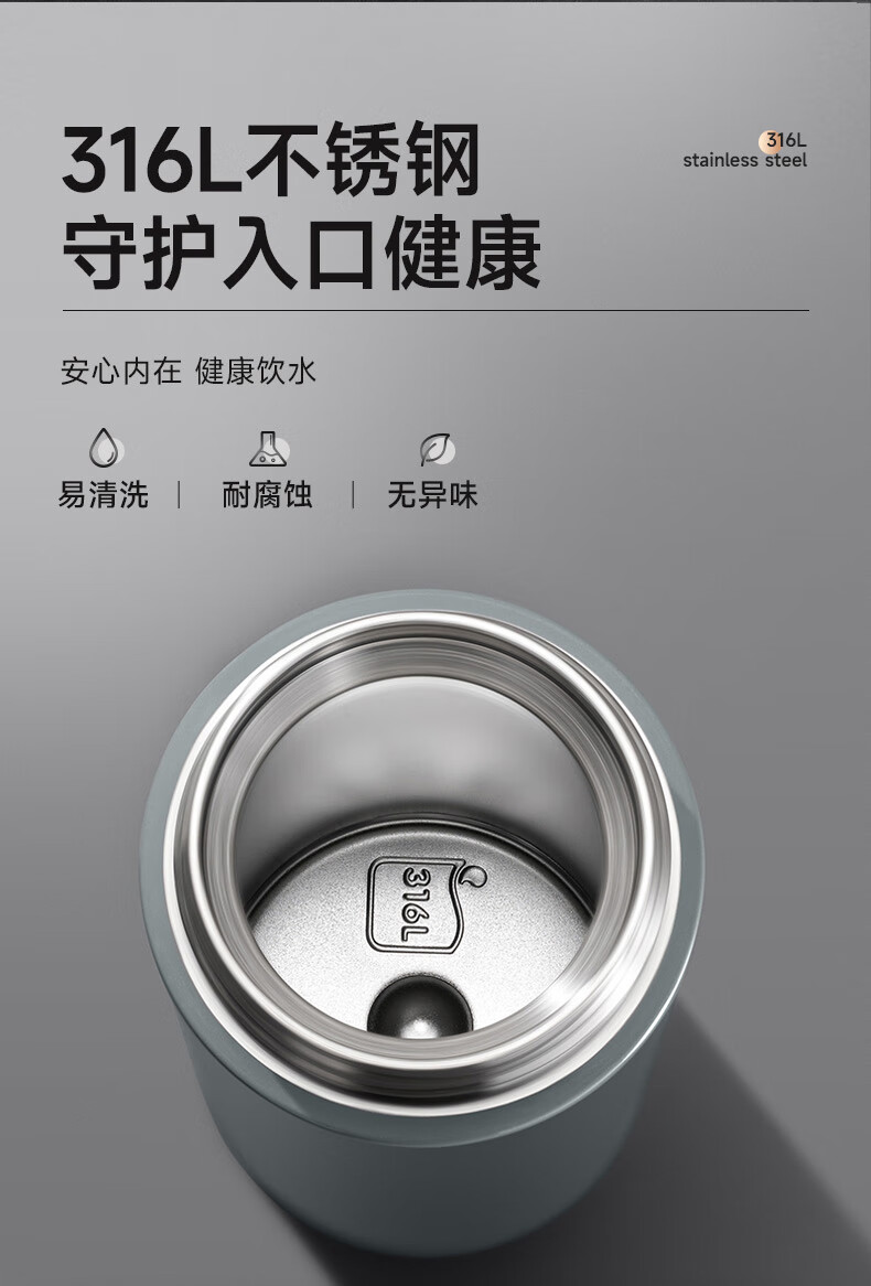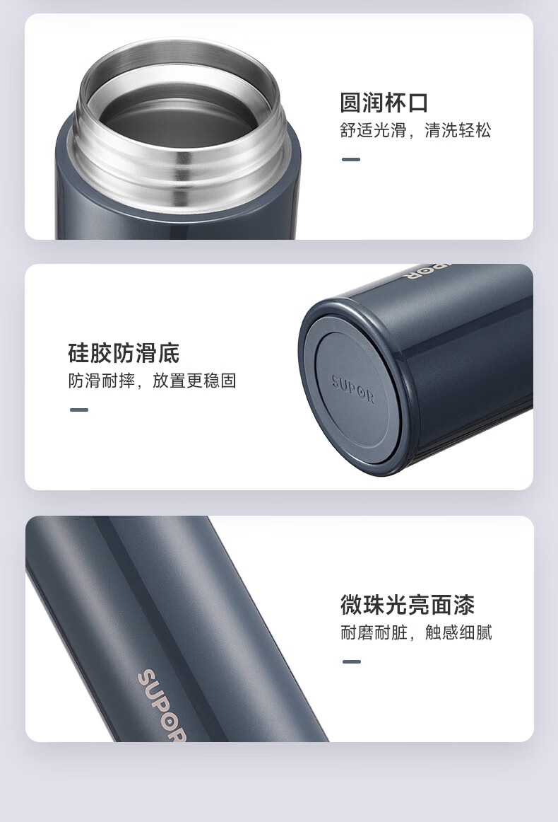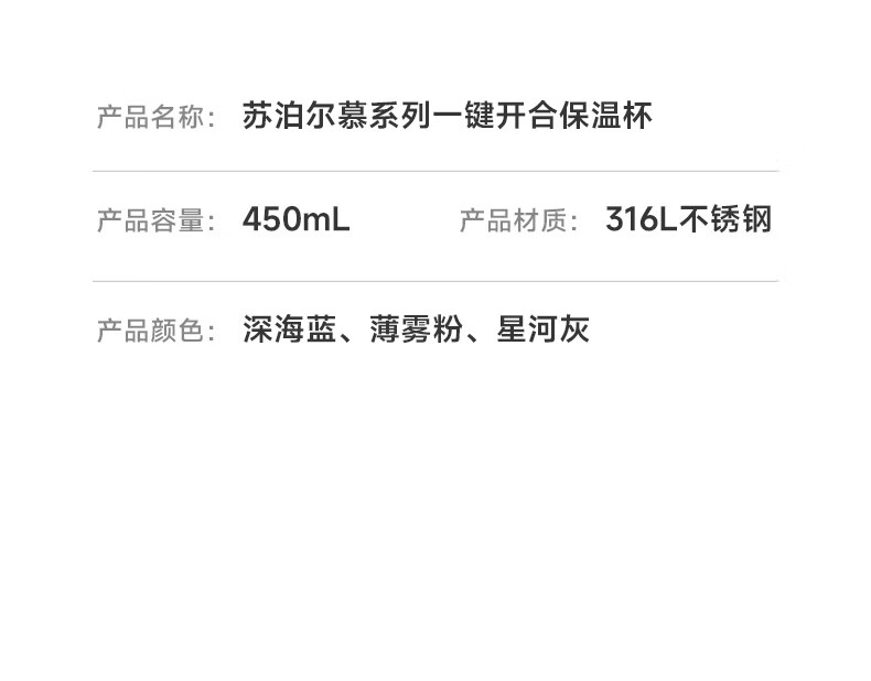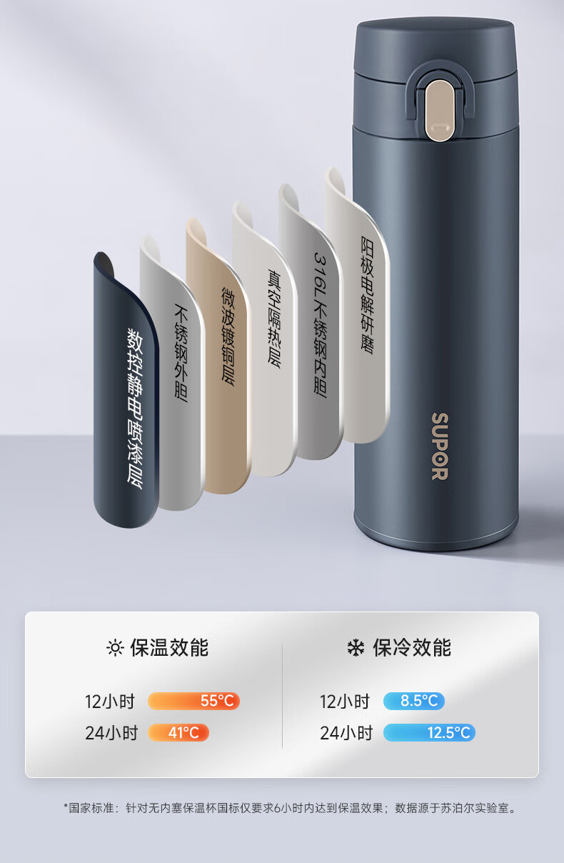 苏泊尔(SUPOR)保温杯316L不锈钢保温杯一键弹盖车载水杯 薄雾粉 450ml AZ20