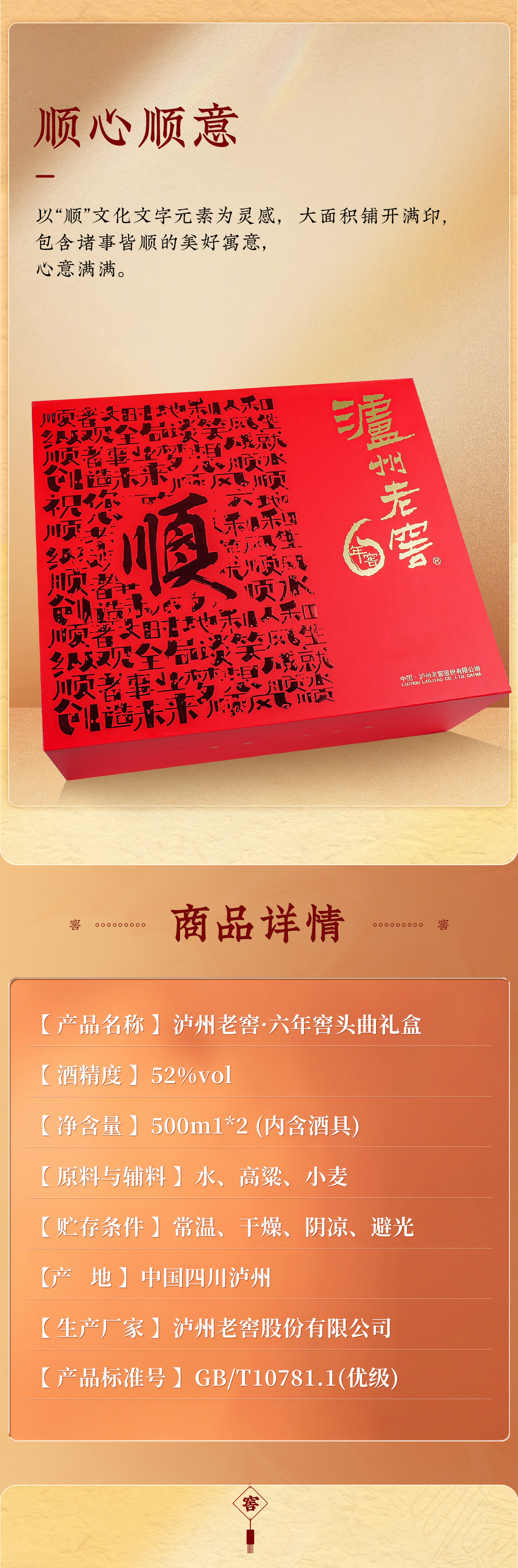 【性价比礼盒组合】52度 泸州老窖六年窖头曲 一路顺·六六顺礼盒 (500ml*2)*2盒 + 老窖世家酒和之善 52%vol (500ml*2)*1盒泸州老窖官方旗舰店