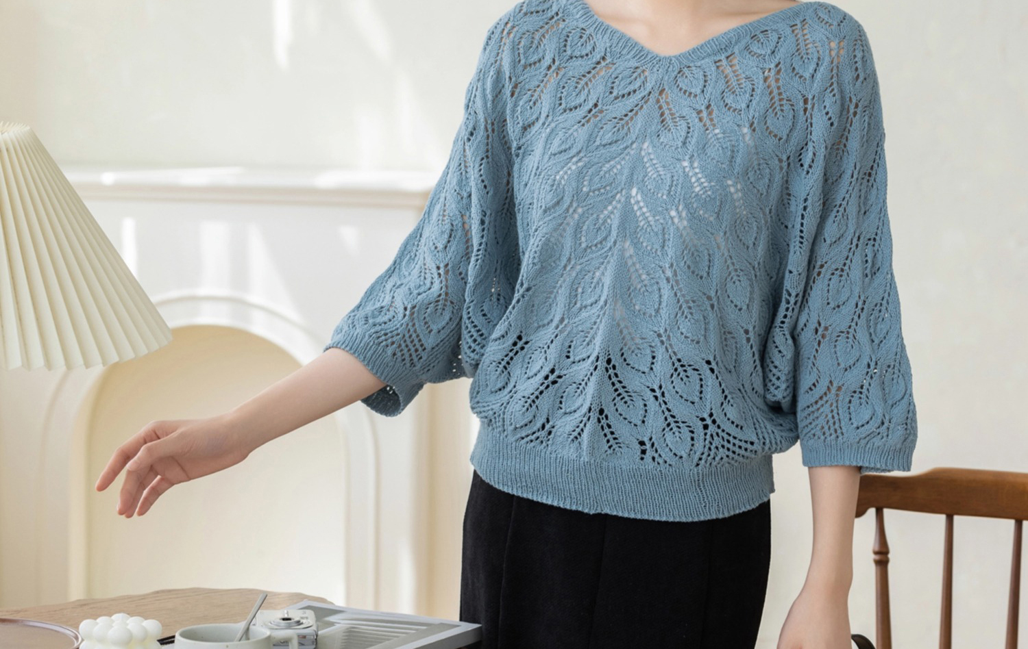 苏苏姐家雀羽罩衫手工diy棒针蕾丝亚麻半袖毛线团材料包