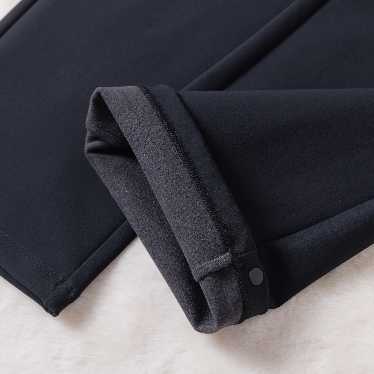 • 保暖细节:内里短绒是 “细密小绒毛”,摸起来像卫衣内层,贴腿但不闷;外层高密度面料把冷风 “挡在裤外”,雪粒子打上来也没透风。中途休息脱手套摸腿,还是暖乎乎的,同行穿普通加绒裤的朋友,直喊 “腿冻得发木”;