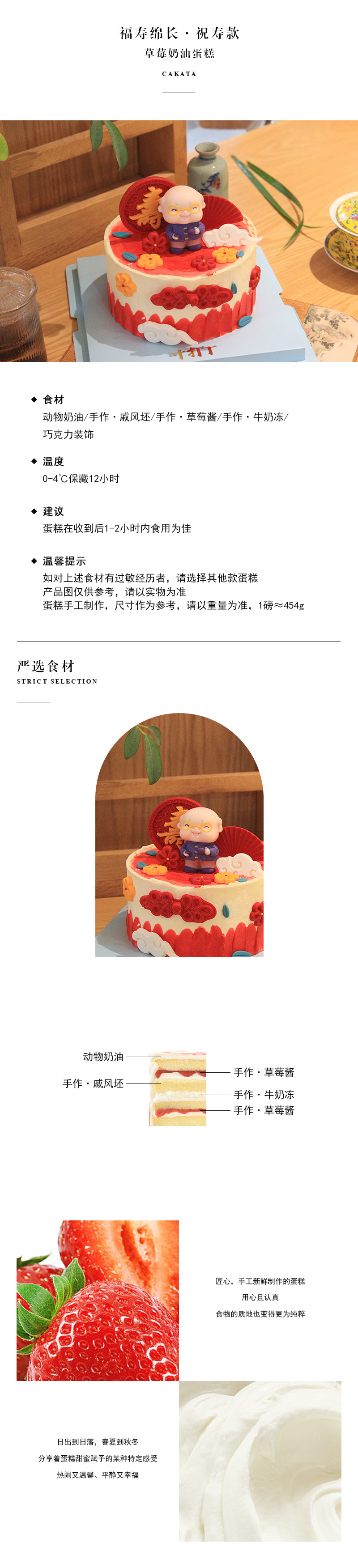 福寿绵长/祝寿款·草莓奶油蛋糕(可备注少糖)