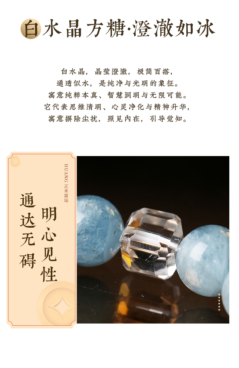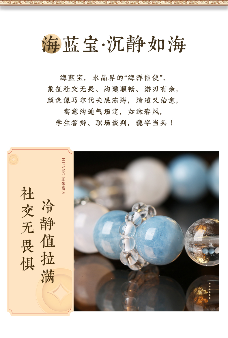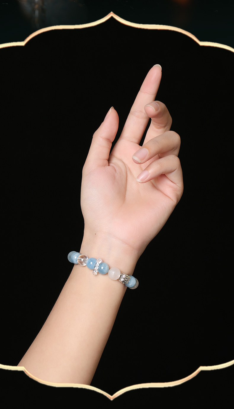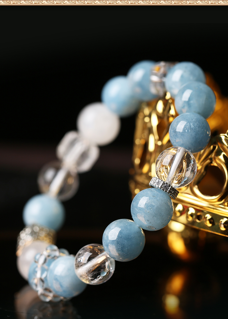 【祈愿吉品】「蓝星海岛」海蓝宝白水晶手链