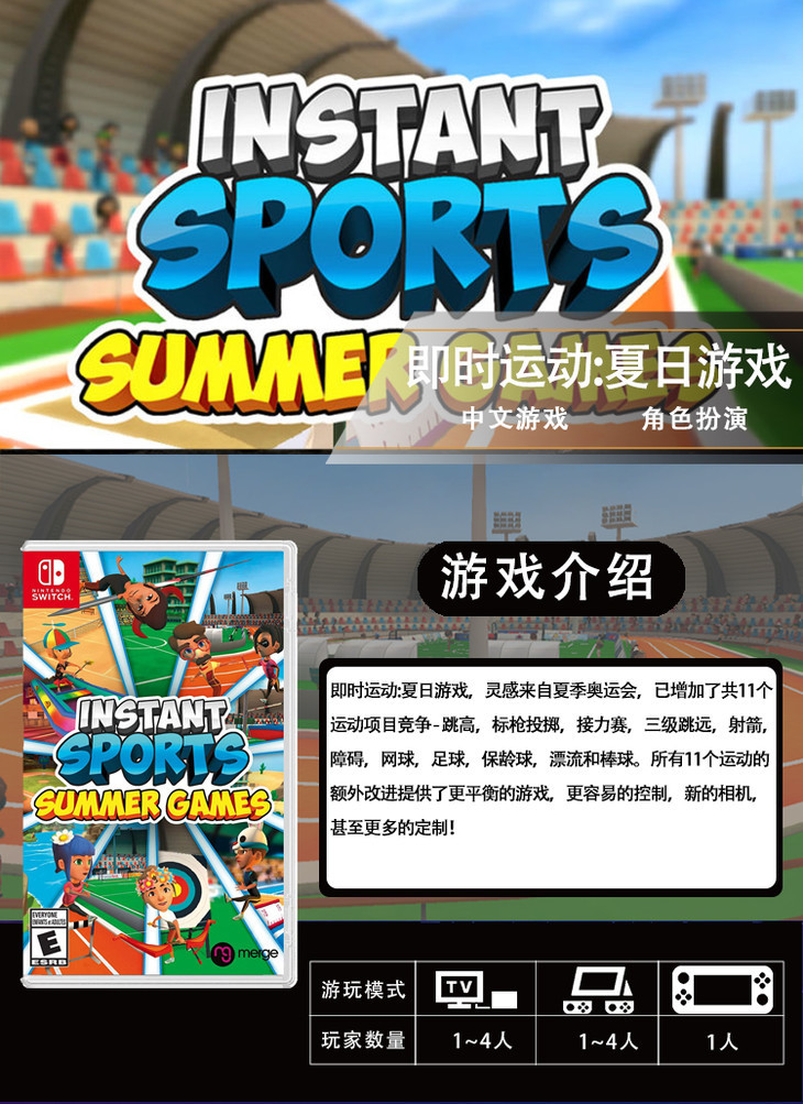 【畅玩卡可租】二手Switch游戏 即时运动 InstantSports 中文版