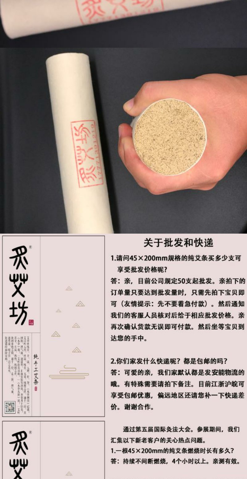 炙艾坊雷火系列蕲艾桑皮纸手工45×200mm纯艾条蕲艾条伴手礼/2支