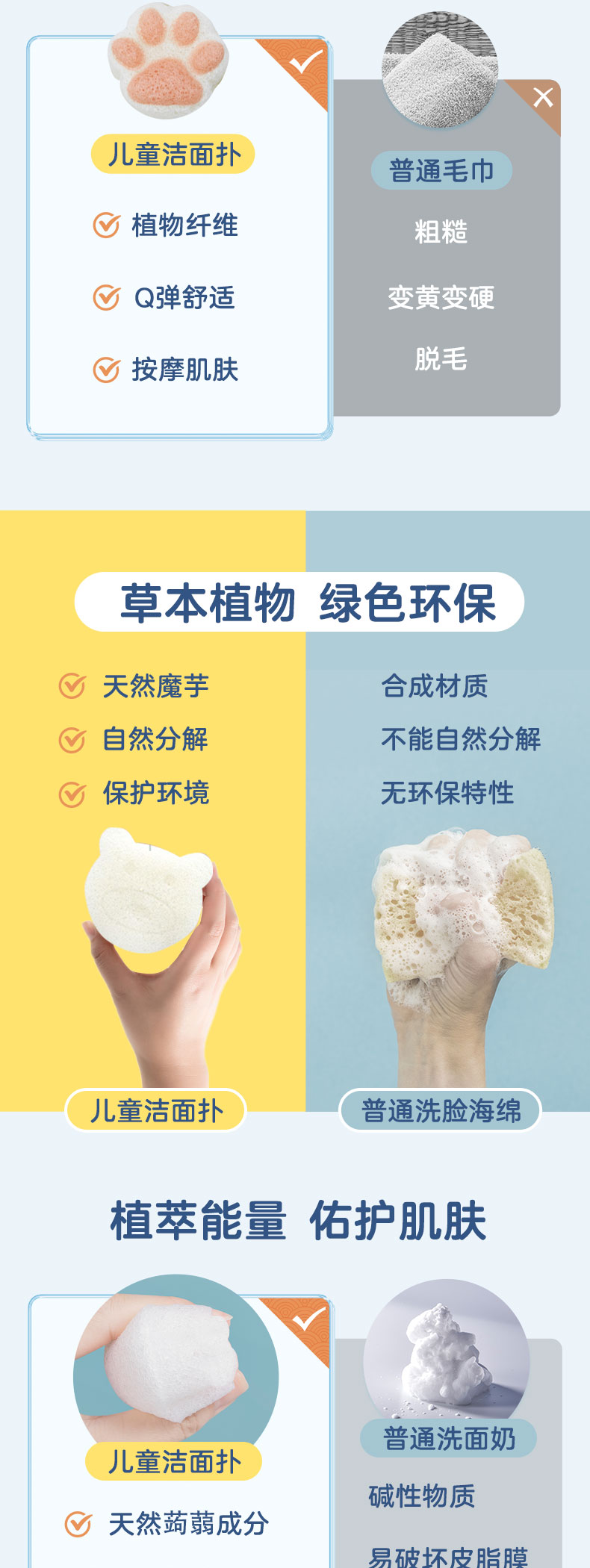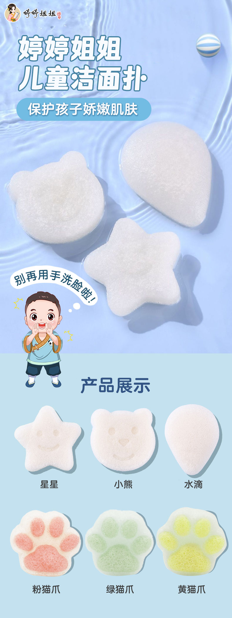婷婷诗教儿童魔芋洗脸扑儿童洗脸神器