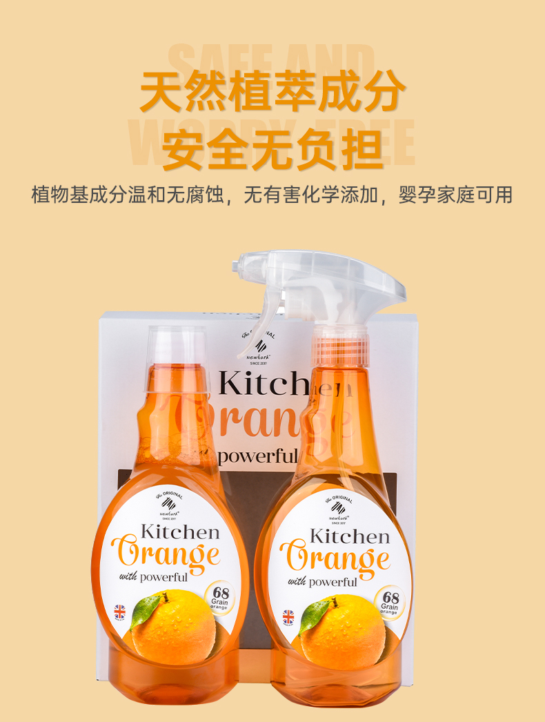 疯抢中!!【1瓶可兑5瓶】【英国原装进口·Newbark鲜橙皮厨房清洁剂】油污克*星 多场景适用 500ml*瓶/礼盒装