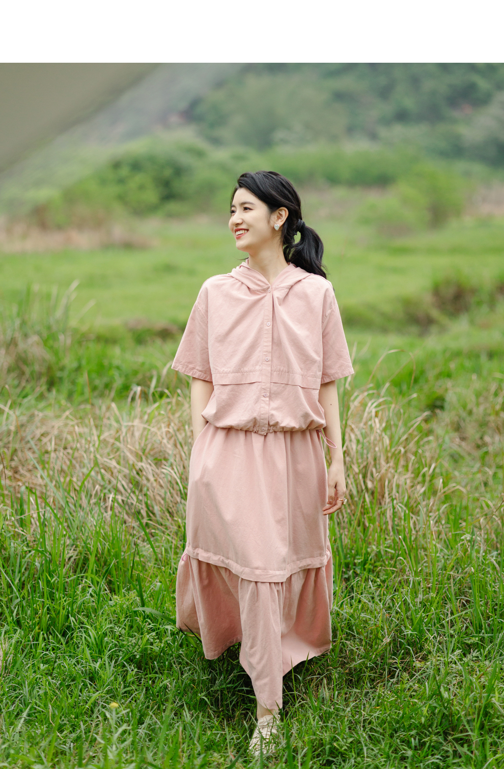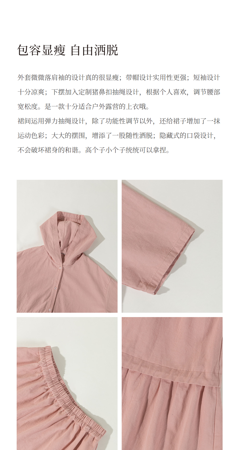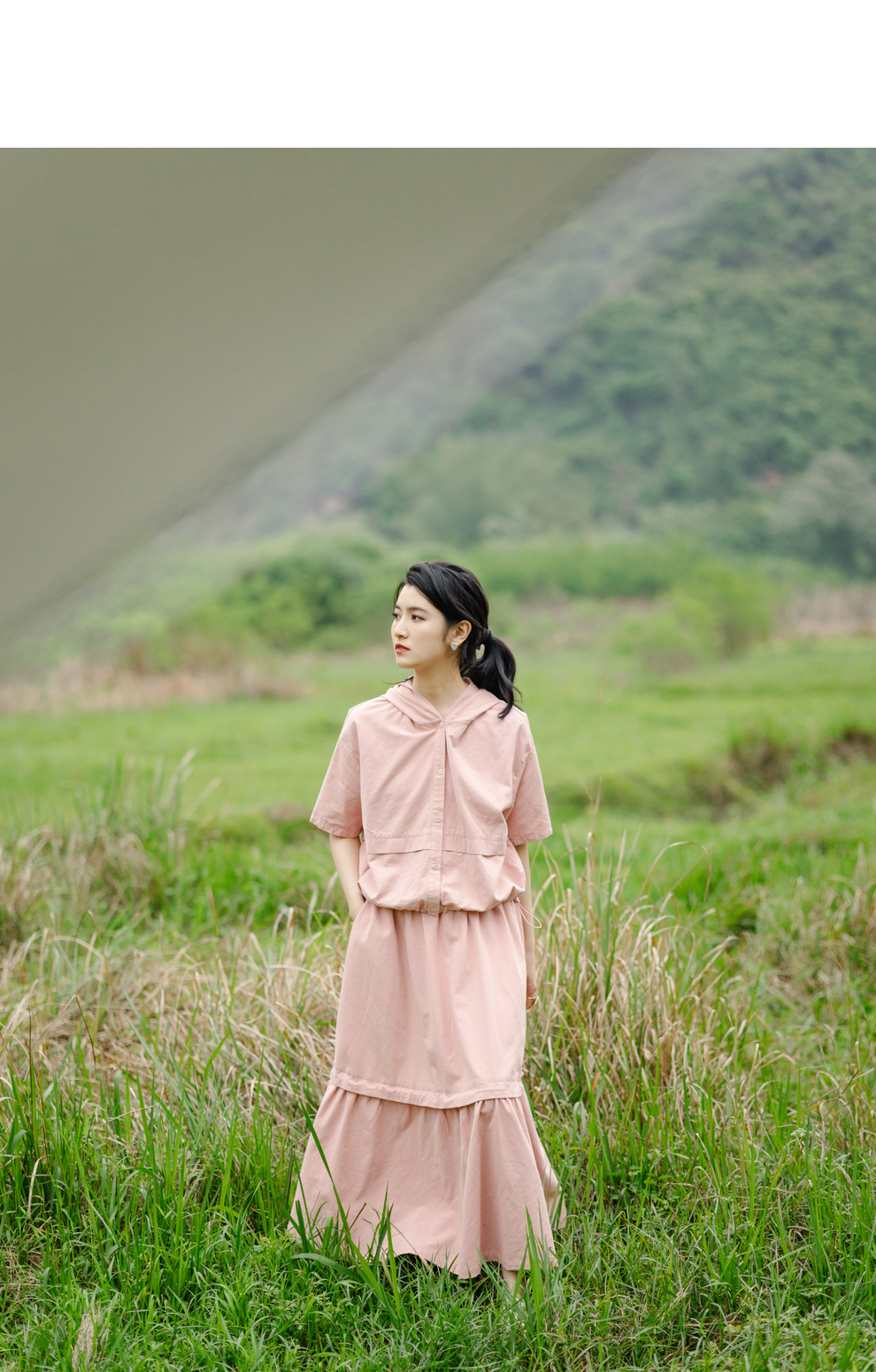 绽放325-326/棉麻连帽卫衣半身裙套装