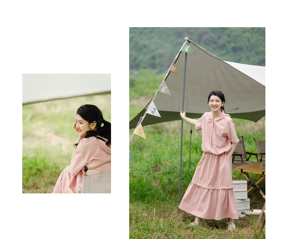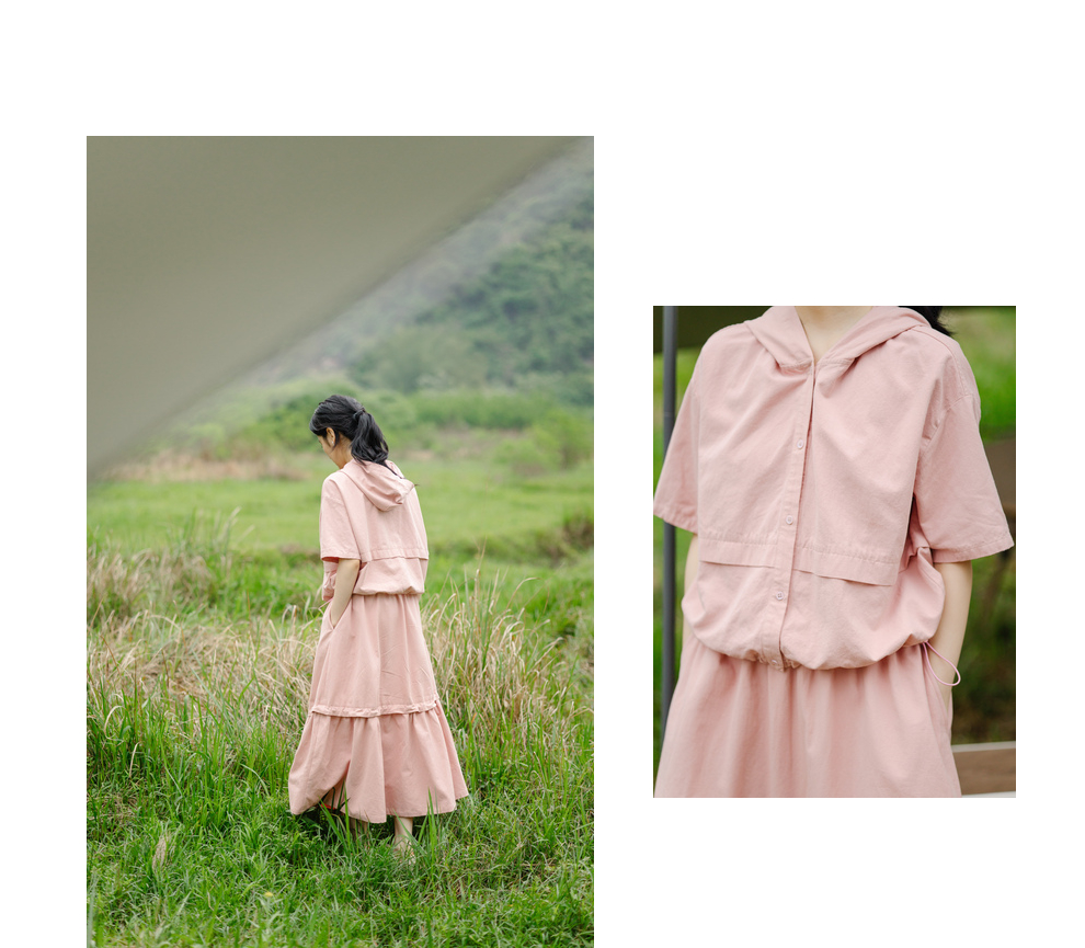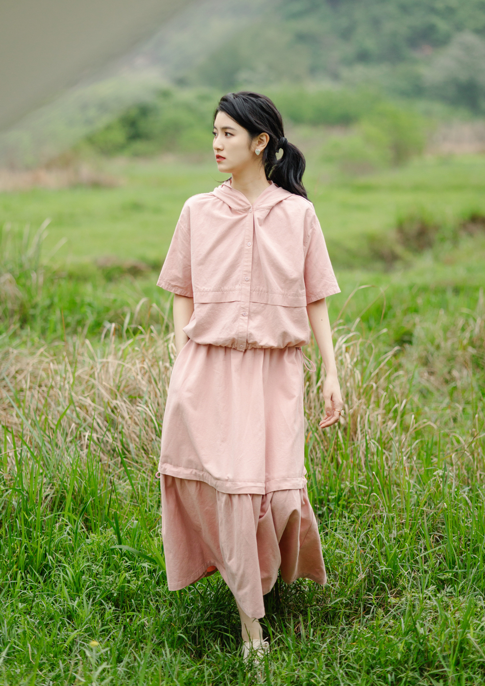绽放325-326/棉麻连帽卫衣半身裙套装