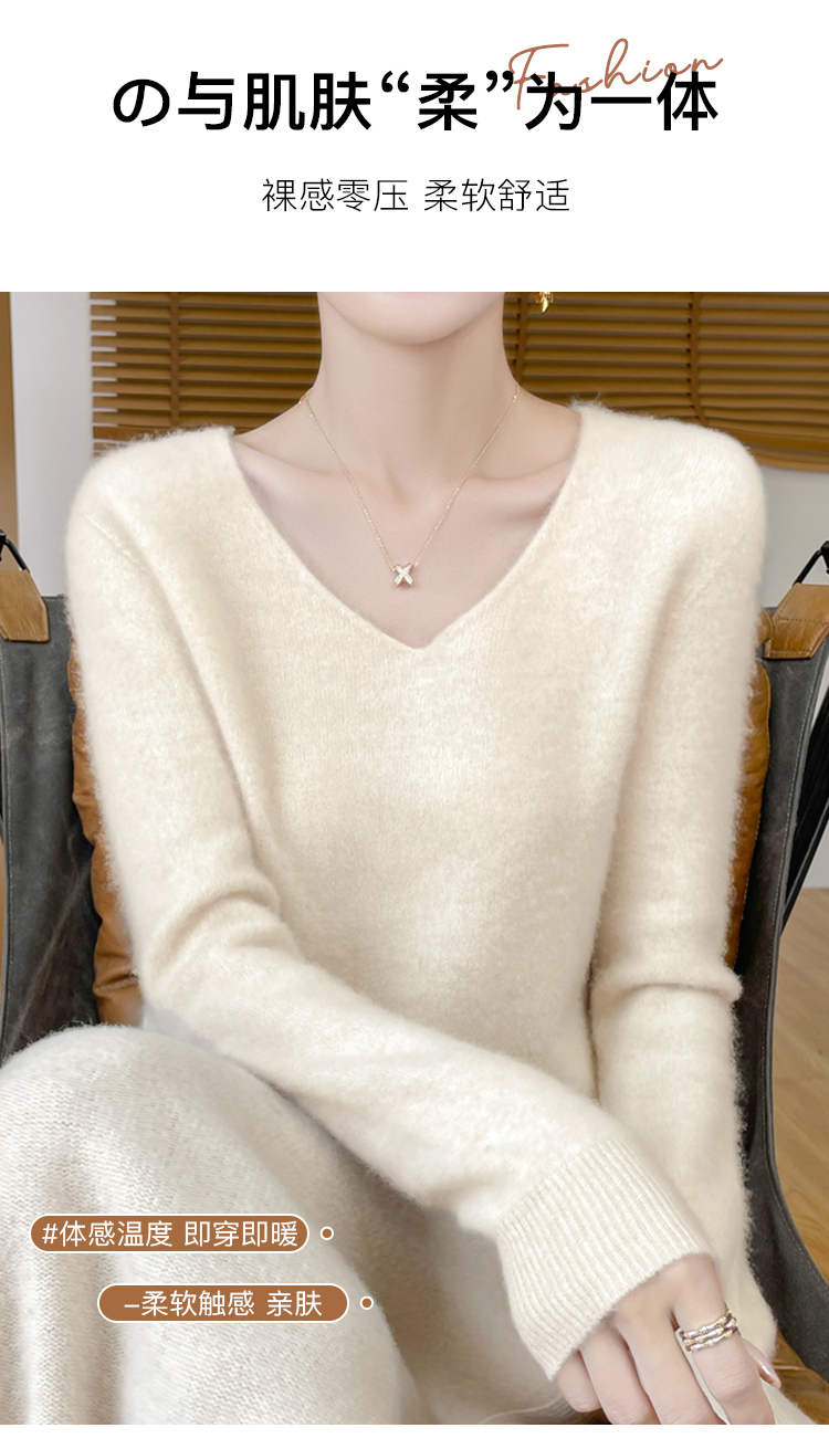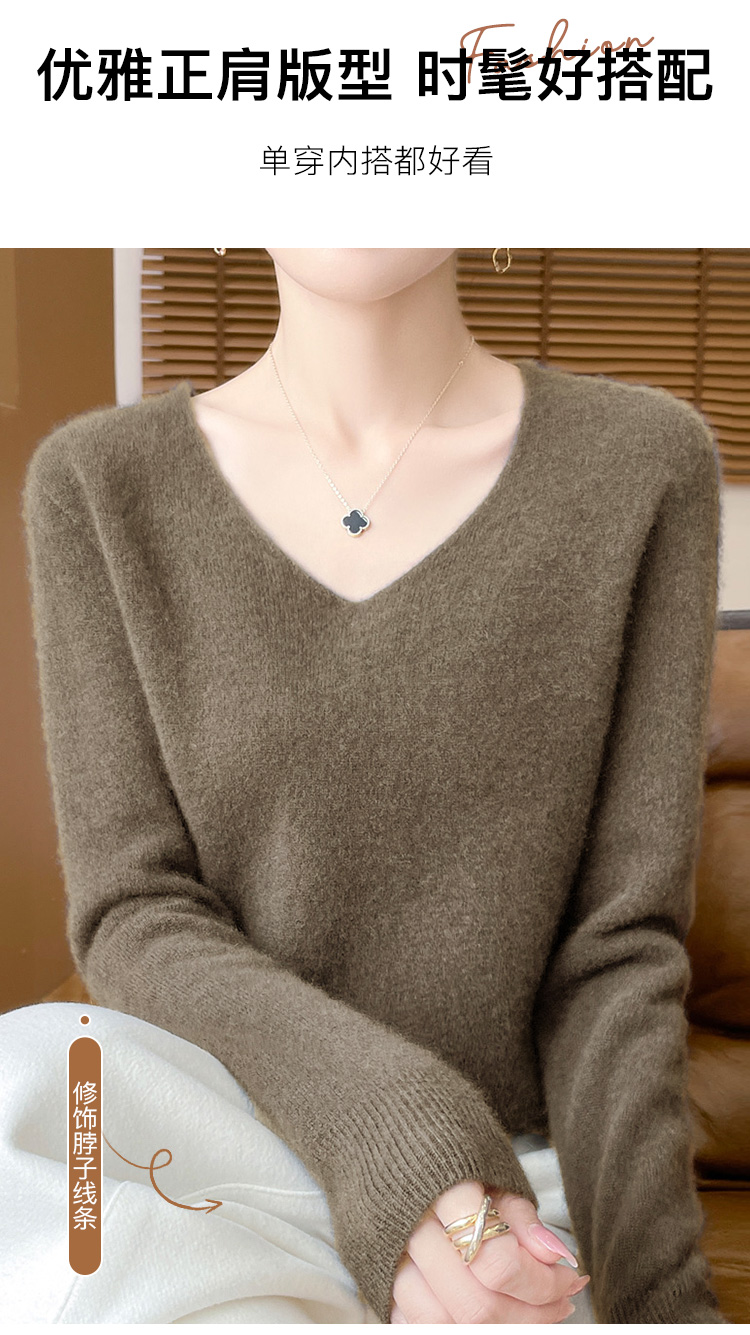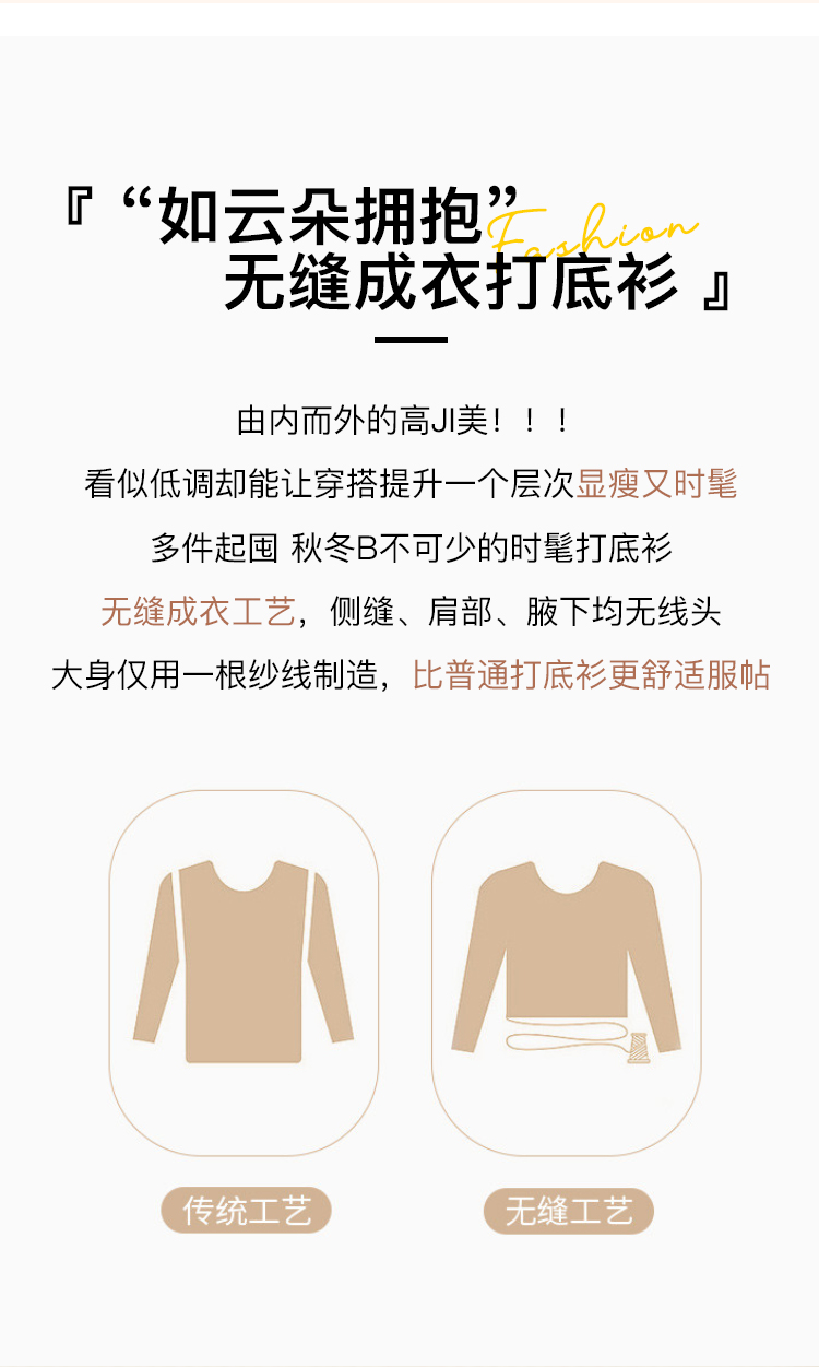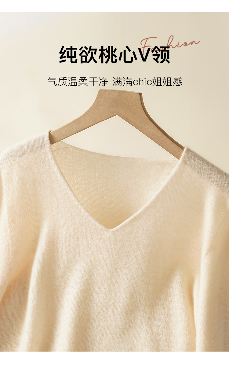 高级感内搭【100%绵羊毛】时尚v领打底衫女无缝舒适一体成型DMR201桃心羊毛打底衫