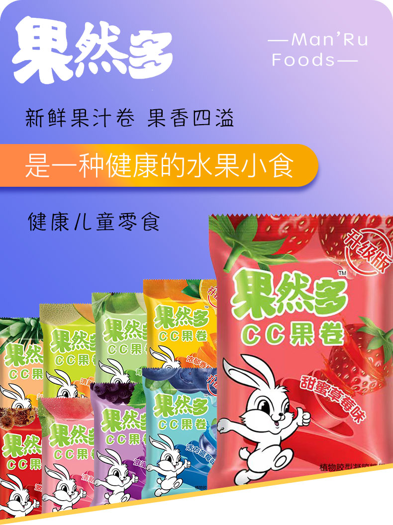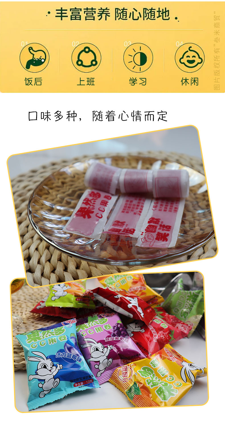 果然多CC果卷13g清新蜜桃味软糖水果味卷纸糖趣味童年怀旧零食休闲小吃