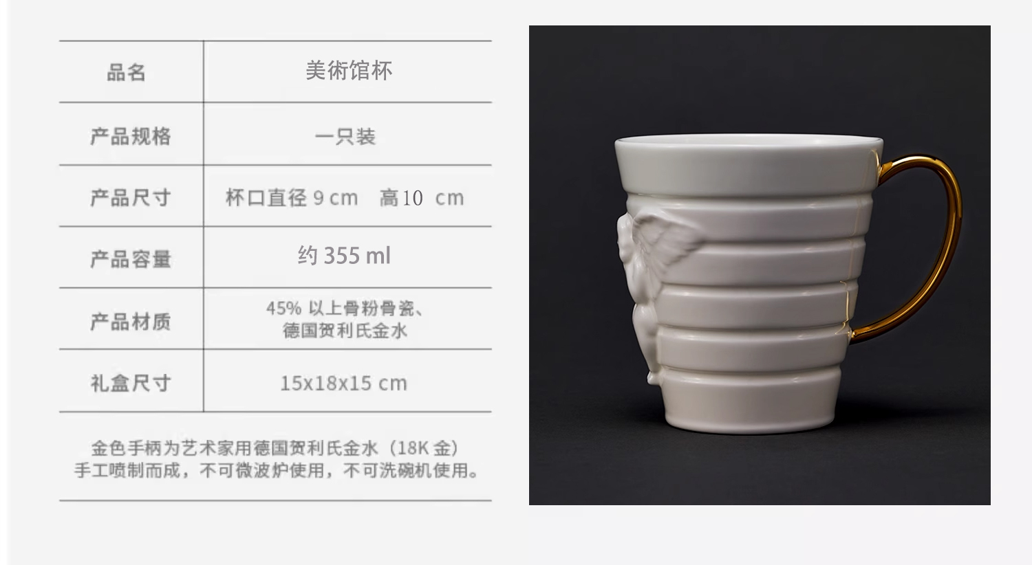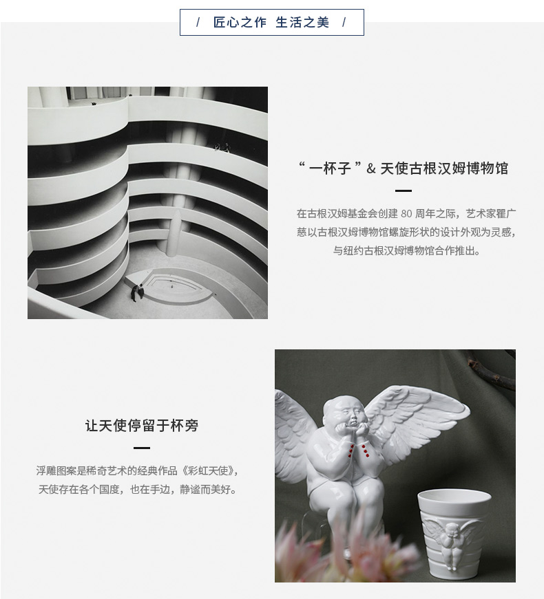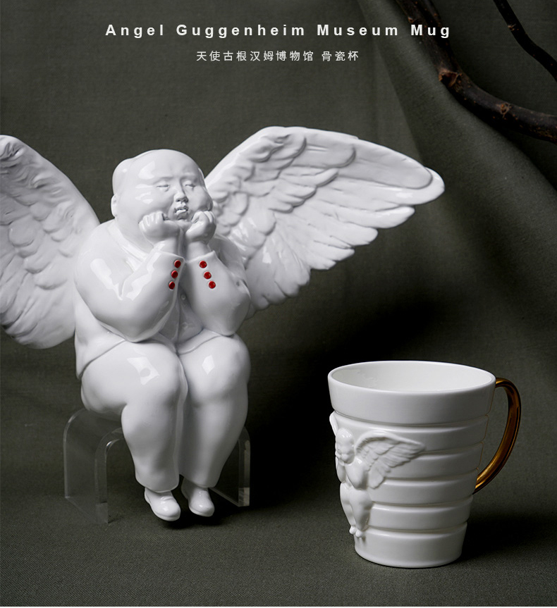 稀奇艺术古根汉姆博物馆合作款天使浮雕水杯茶杯早餐杯礼物包装