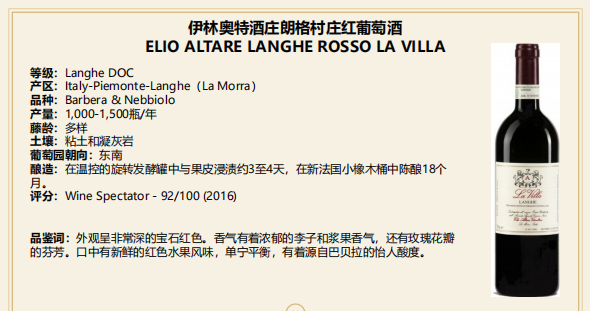 【双品种混酿新派!91 分佳酿!】Elio Altare Langhe Rosso La Villa 2021 750Ml