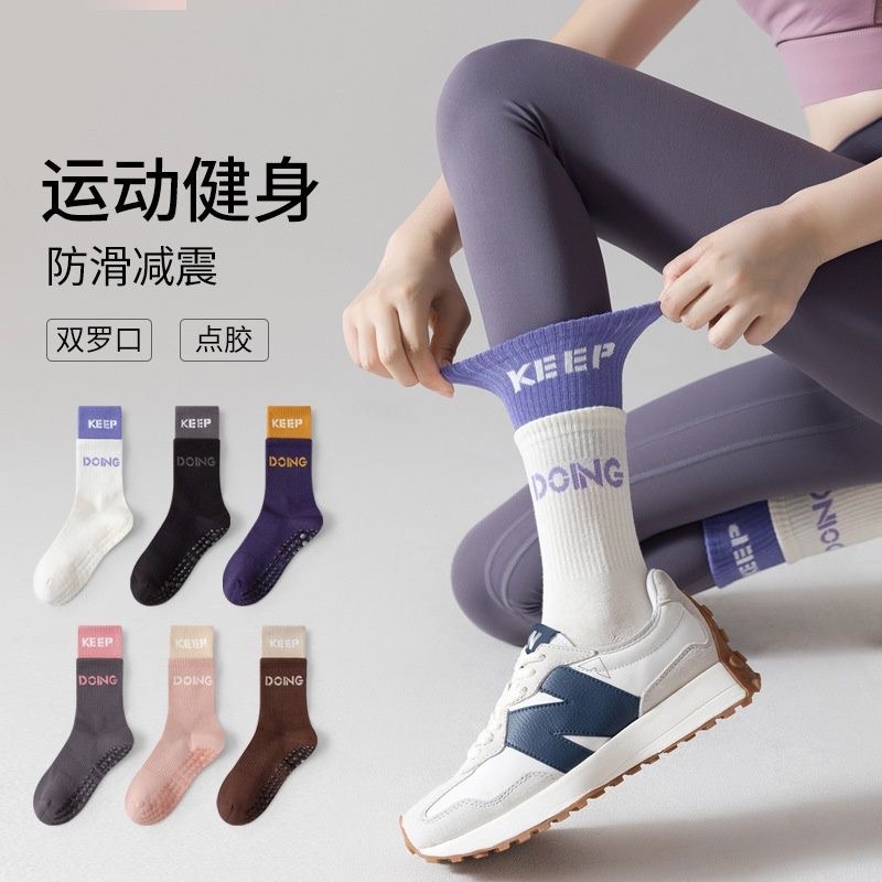【买1送1❗️运动健身瑜伽袜】全脚掌硅胶防滑 瑜伽/普拉提/跑步/芭蕾/健身 在地面上防滑穿在鞋子里更防滑!防滑袜女跑步袜多功能棉中筒袜子拼色地板袜专业瑜伽袜纯