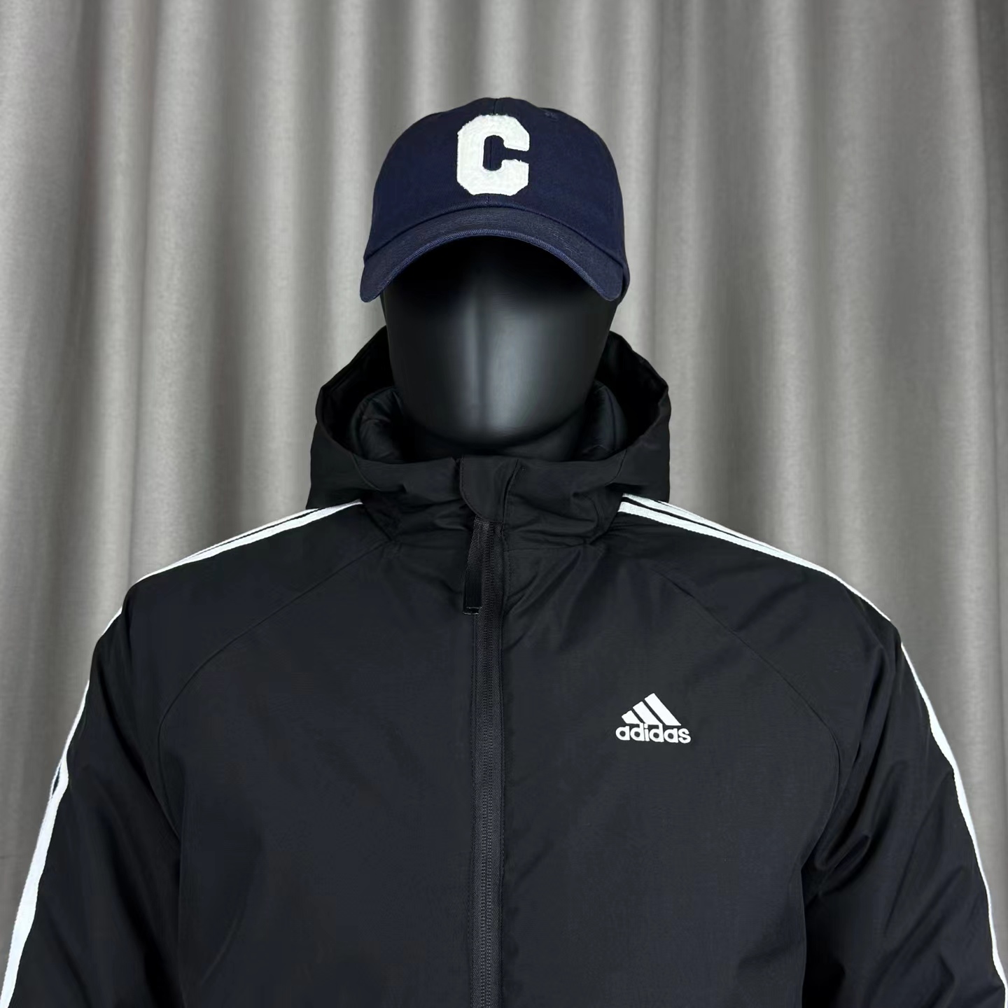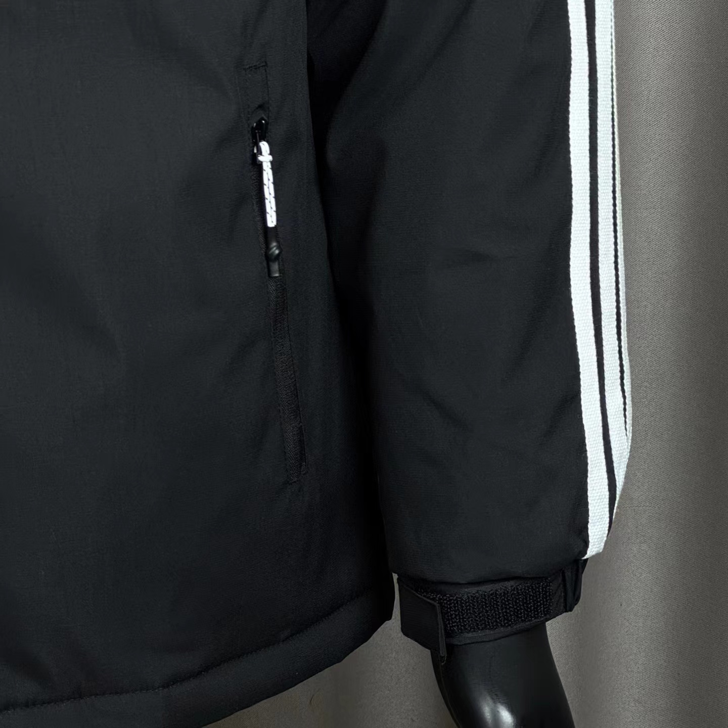 D111945三道杠连帽加厚棉服胸前刺绣logo字母长袖拉链夹克口袋外套