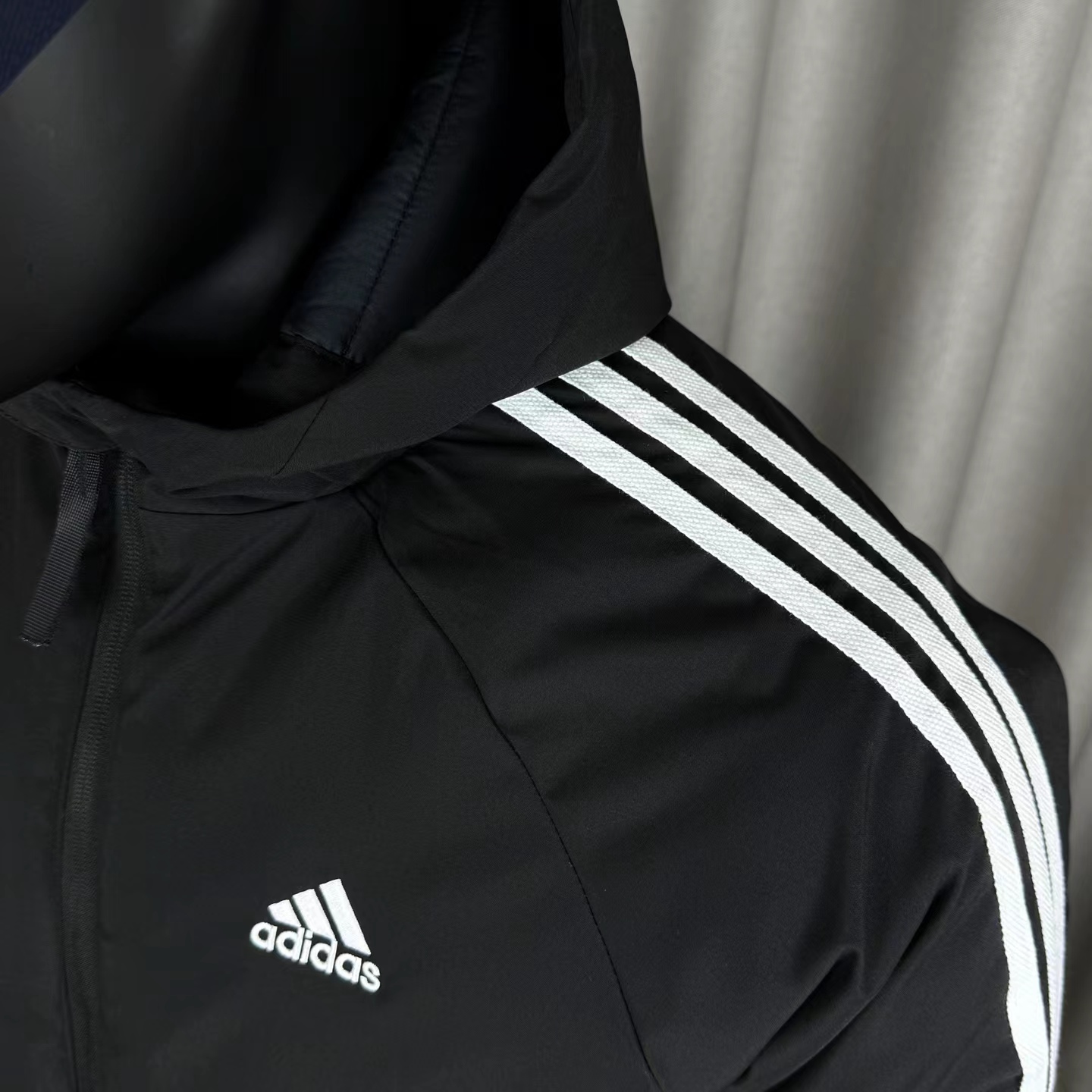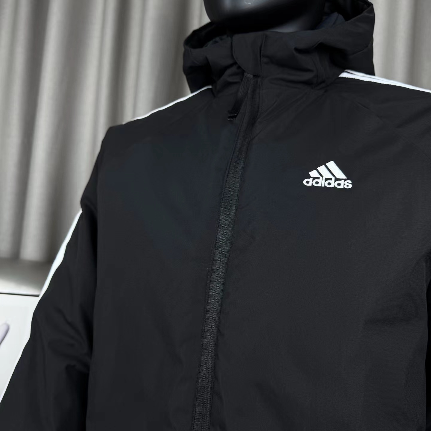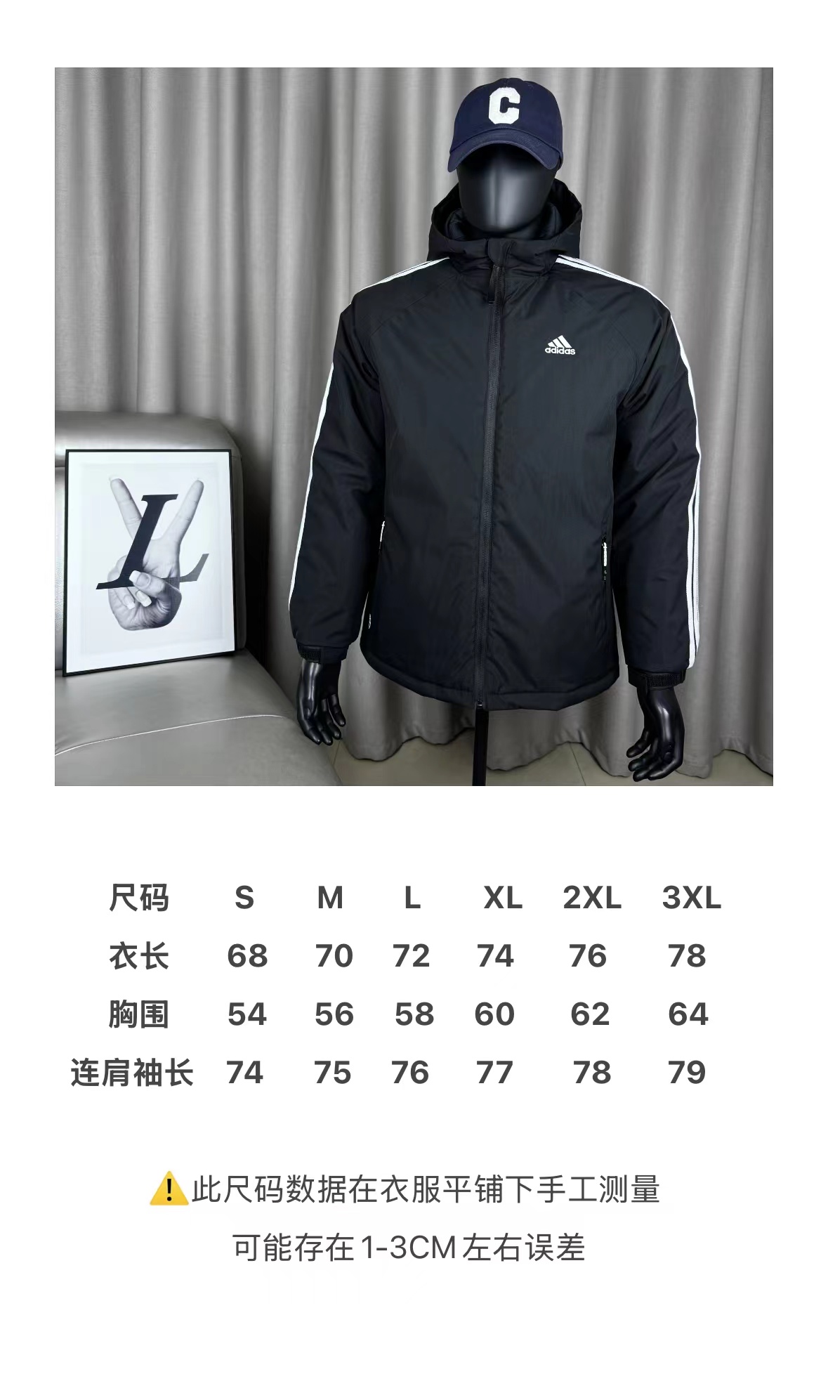 三道杠连帽加厚棉服胸前刺绣logo字母长袖拉链夹克口袋外套男女同款 面料采用定制原版高密度防泼水面料,内里分区定位充棉,不易跑棉,背部添加石墨烯黑金自发热面料,保暖程度大大提高,松紧袖口更加防风保暖,内里 配备口袋,胸口处字母采用万针刺绣,清晰饱满无毛边,口袋处有拉链,胸口小logo搭配纯色整体,精典百搭,男女都好穿!