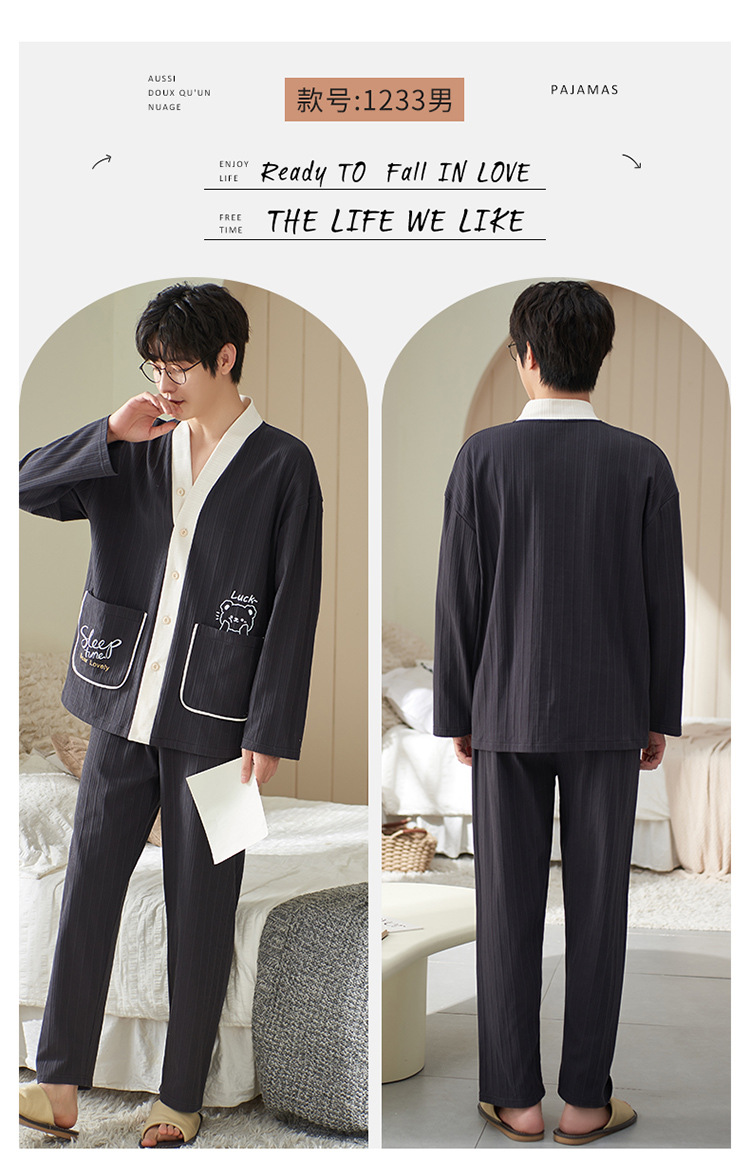 春秋情侣睡衣开衫长袖两件套舒适时尚男女家居服可外穿套装 stt11