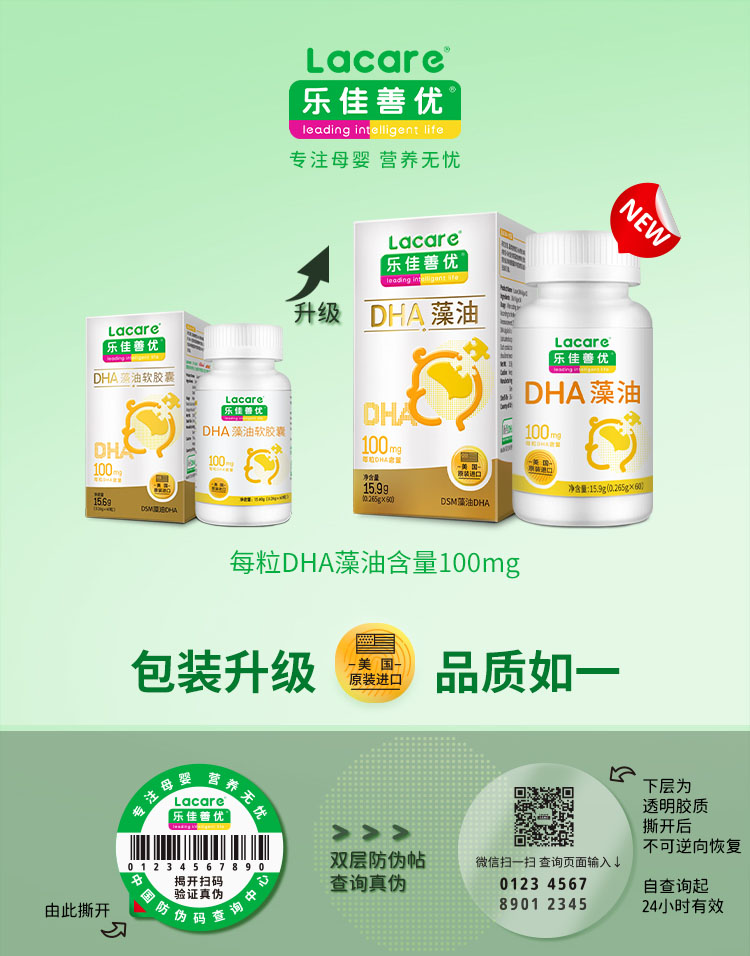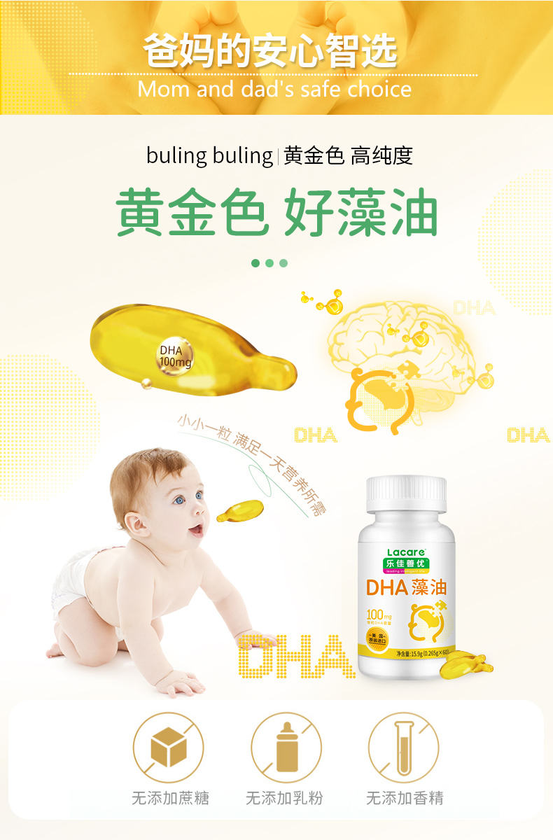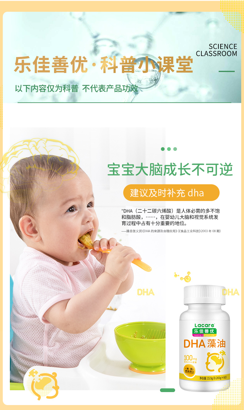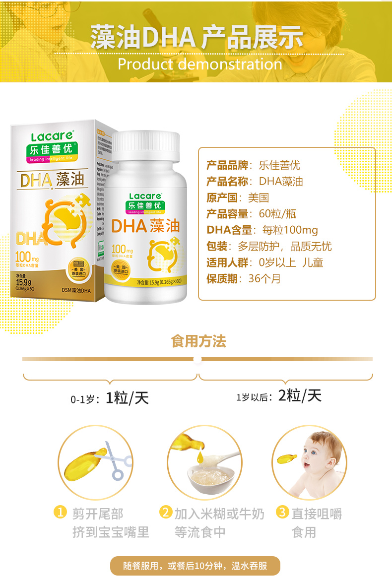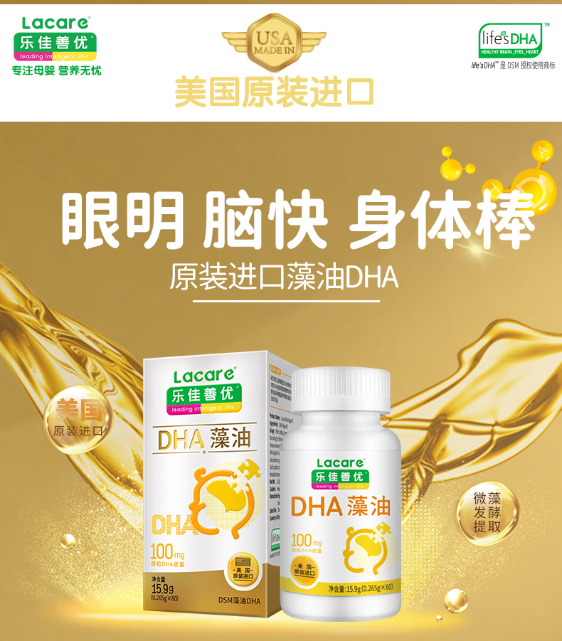 乐佳善优lacare美国原装进口婴幼儿dha儿童宝宝专用60粒