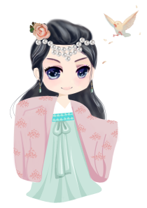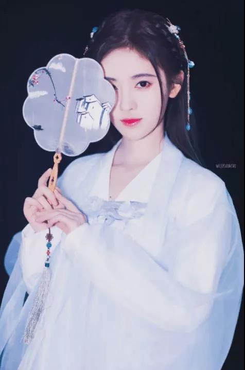 身披汉服,头戴珠钗,手拿合欢扇……
