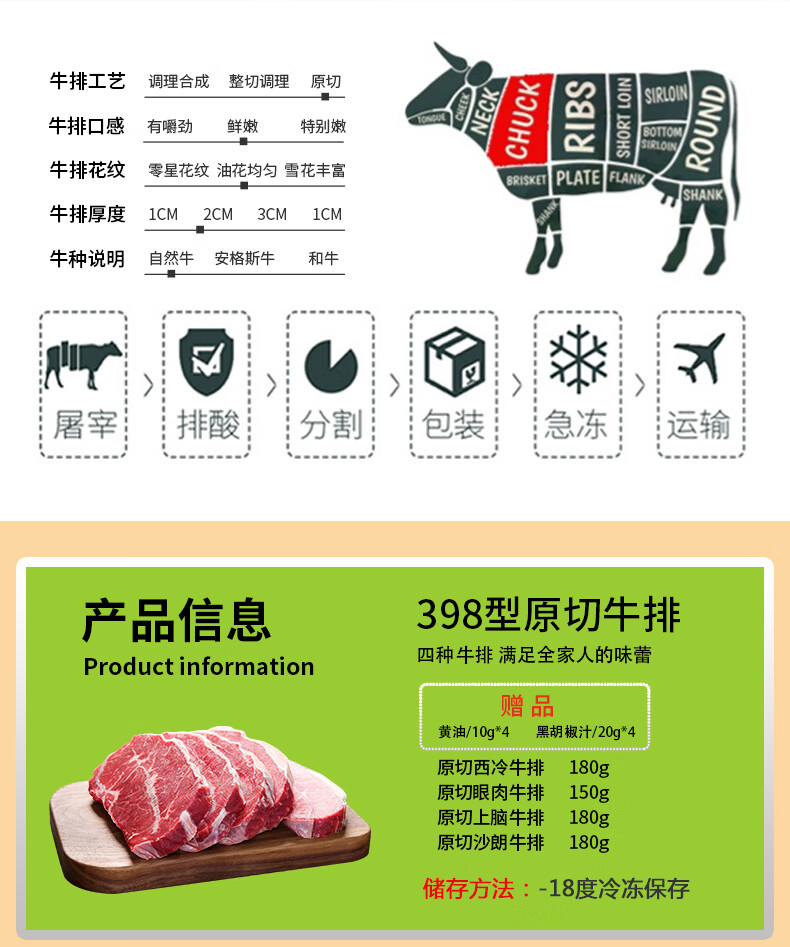 25年鲜颂坊 原切牛排礼盒398型810g/盒【LKCJ1.5】