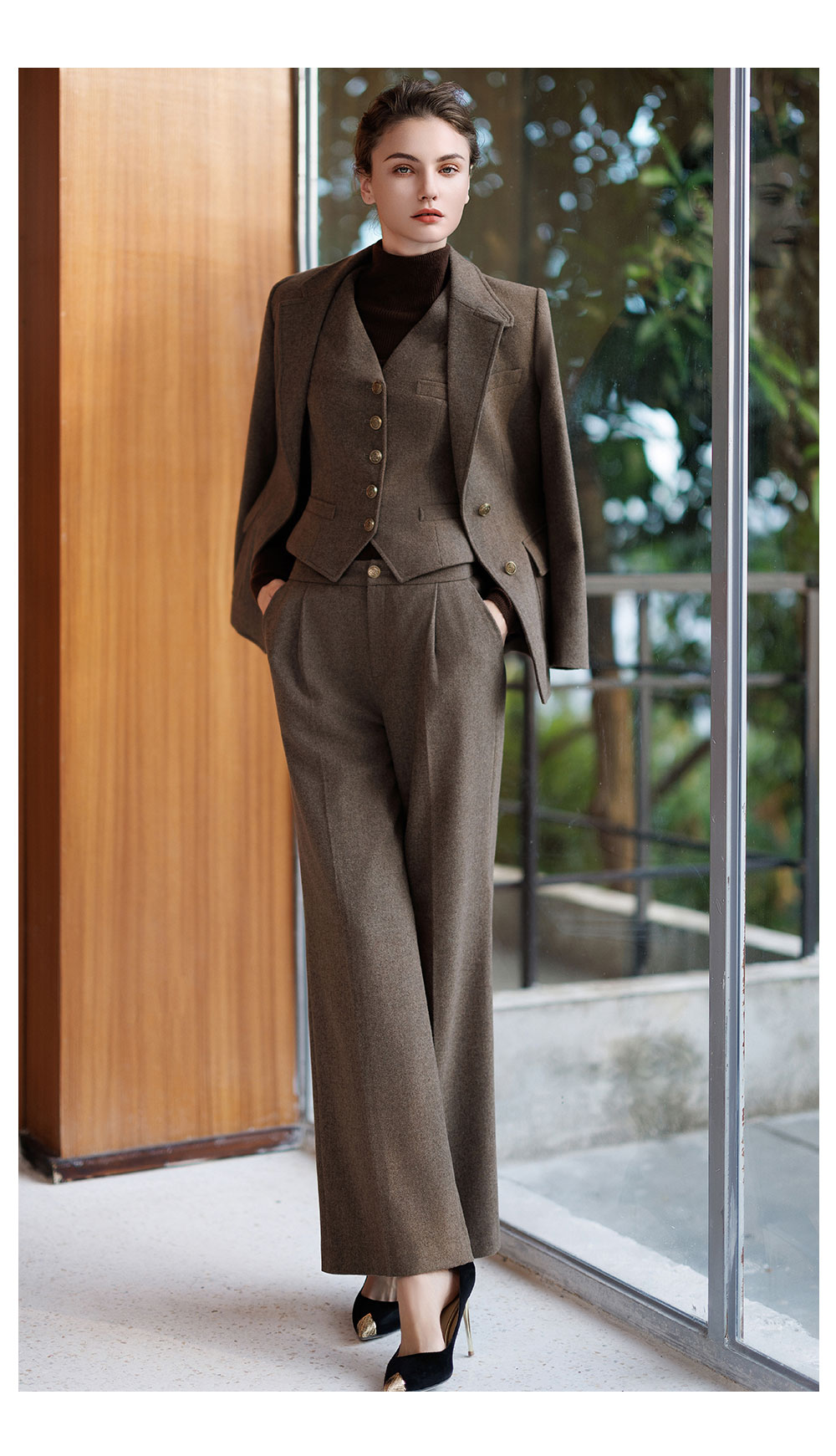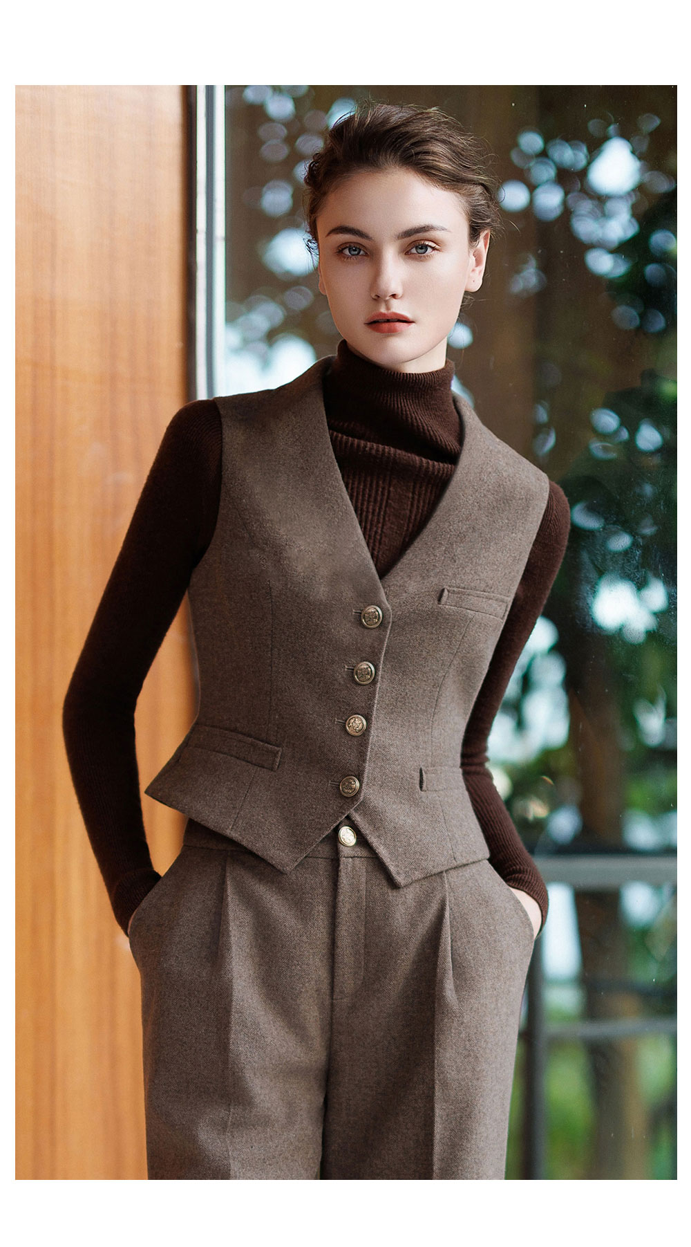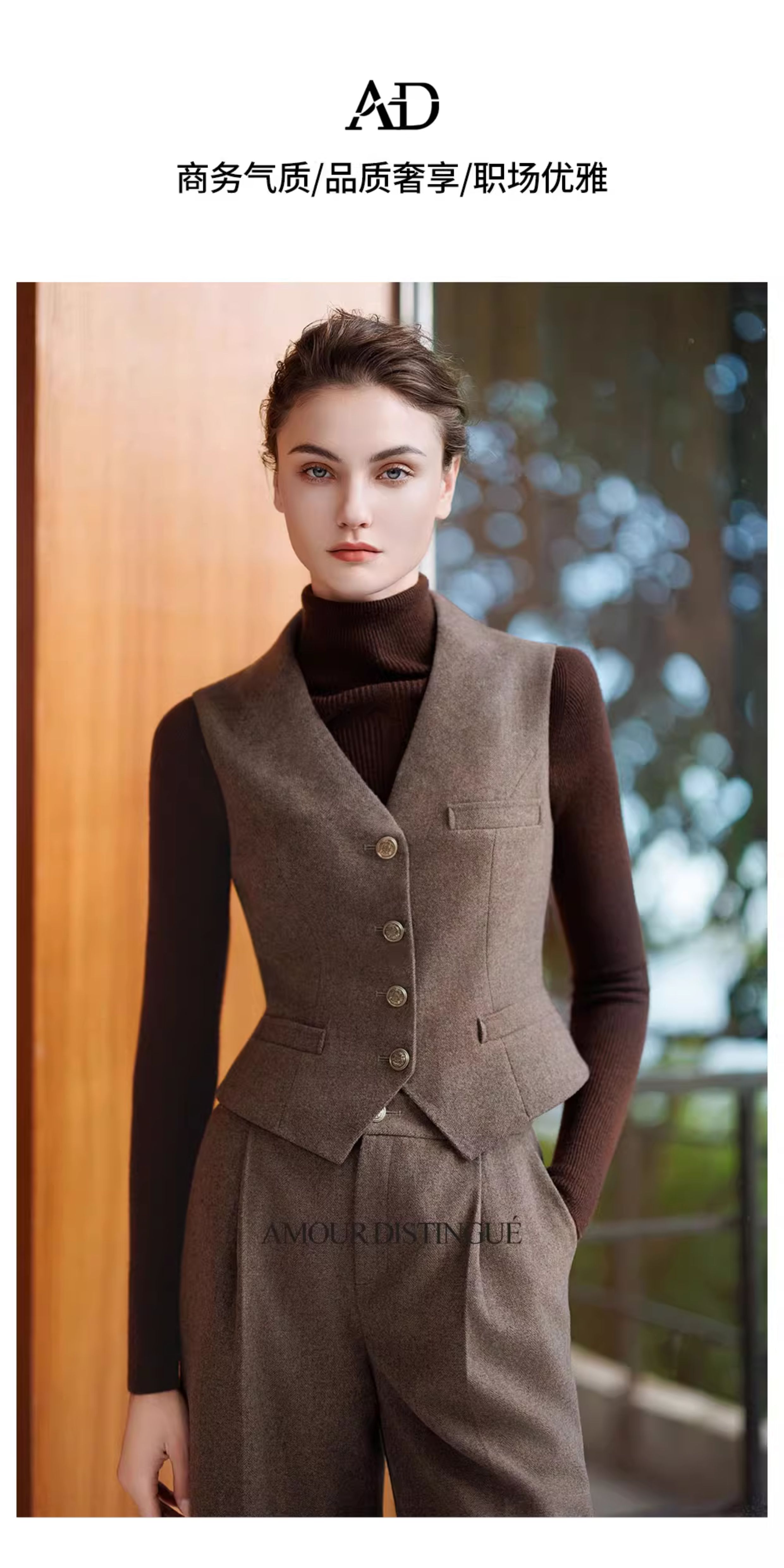 AD法式复古西装马甲女2025新款秋冬高级感修身英伦上衣羊毛马甲