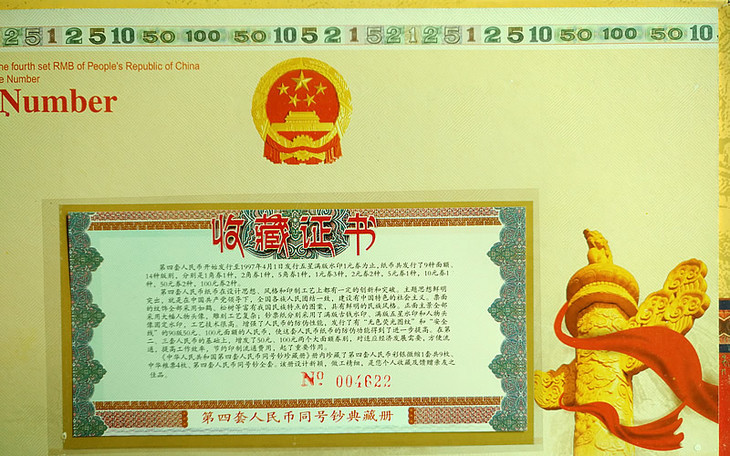 每册均赠送第四套人民币彩银“微缩版”,并配有《收藏证书》。