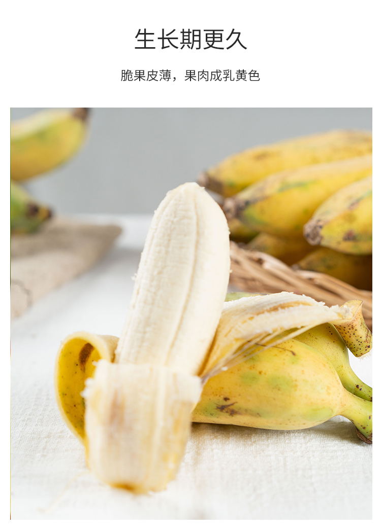 芭蕉特点:生态芭蕉个头小,天生有籽,丑,自然成熟后会有黑斑黄斑等,属于正常现象,黑斑越多成熟度越高越好吃。