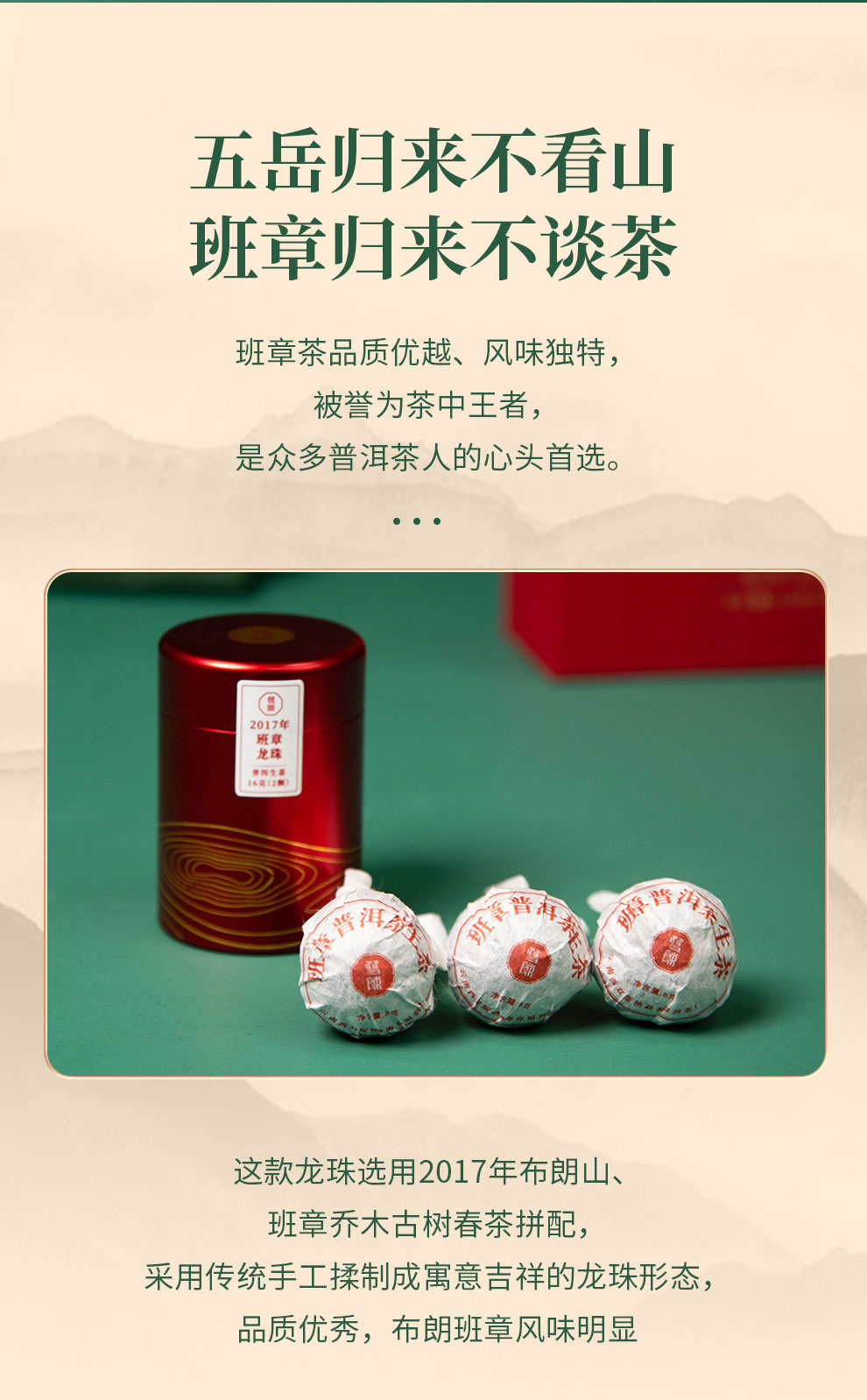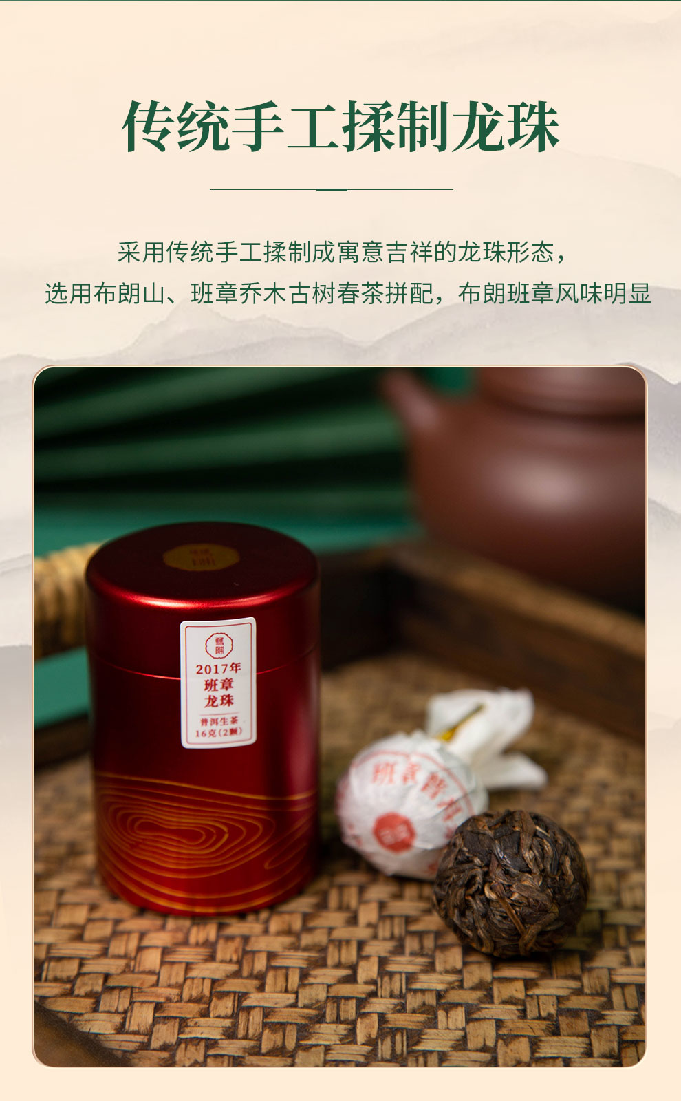 2017年班章龙珠普洱生茶班章料传统手工揉制龙珠8-9克*8颗/套