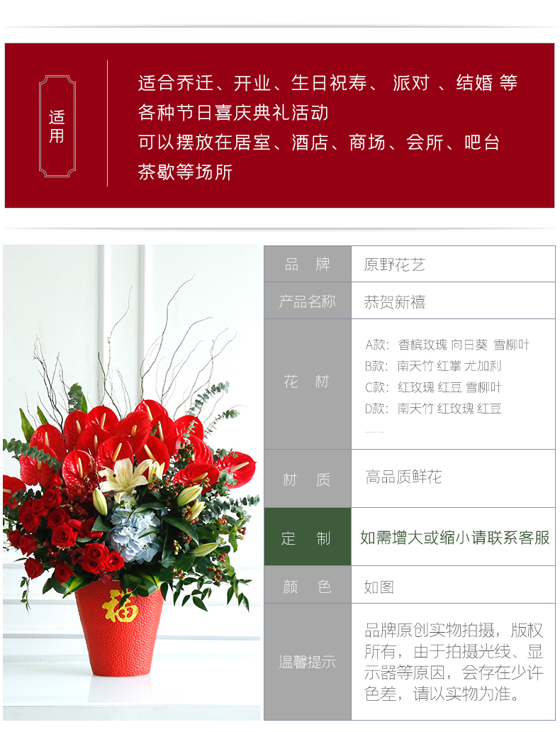 (12款可选)乔迁礼品生日节日开业婚庆商务高端瓶花