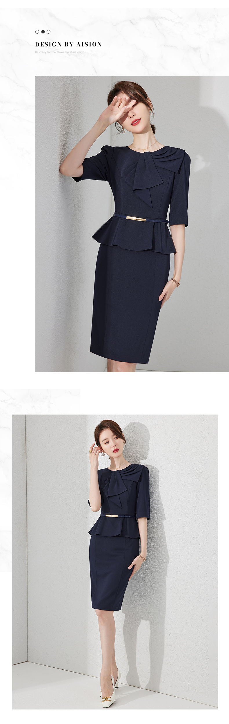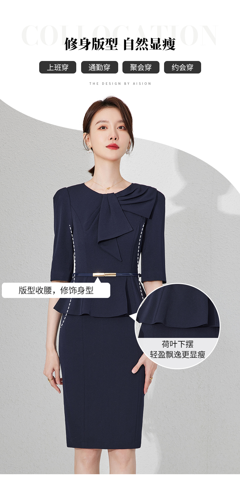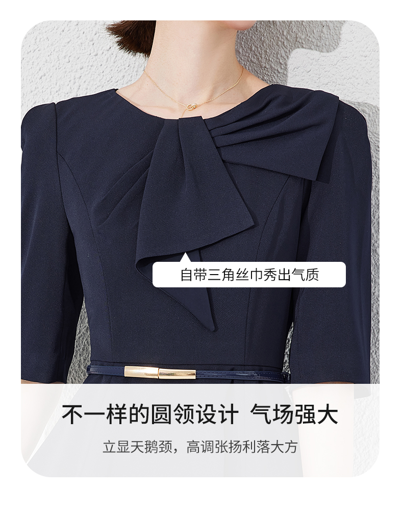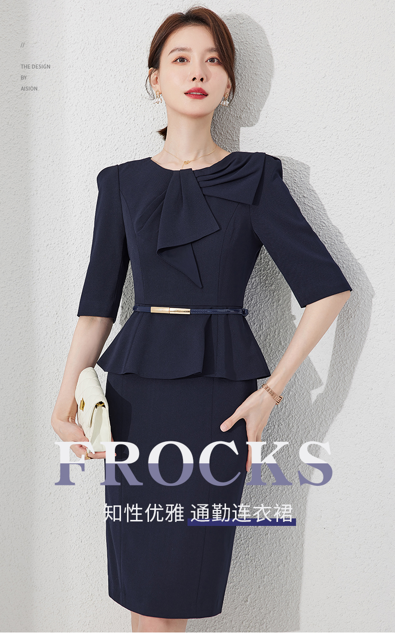 艾尚臣职业连衣裙女气质中袖夏季新款通勤正式场合裙子薄款