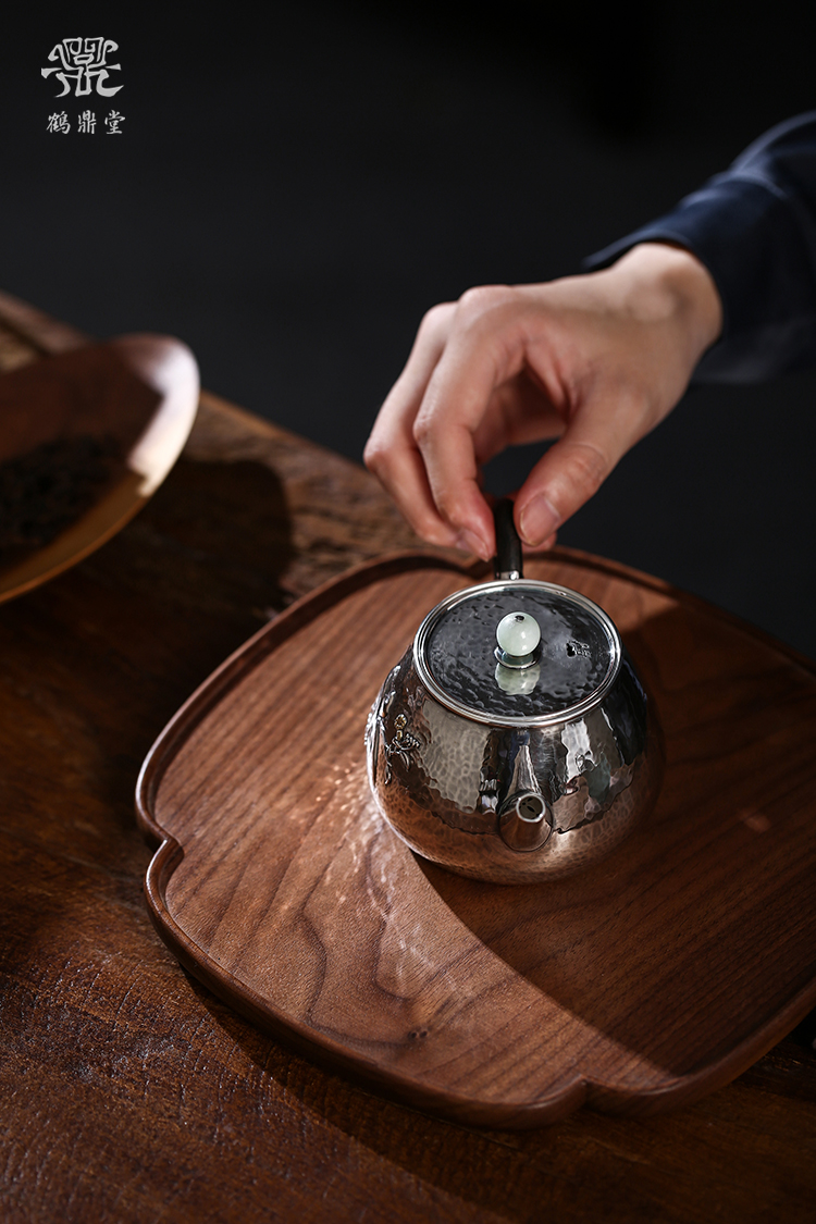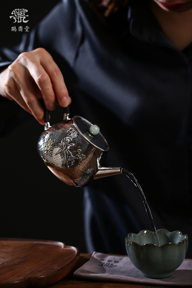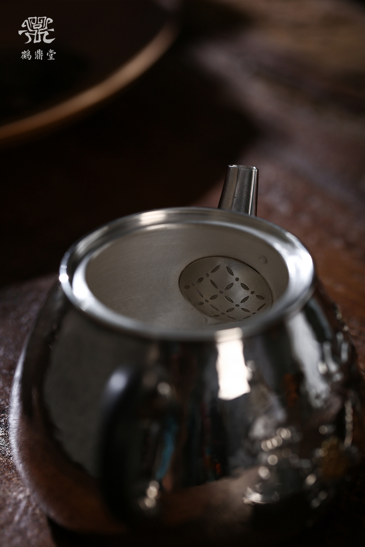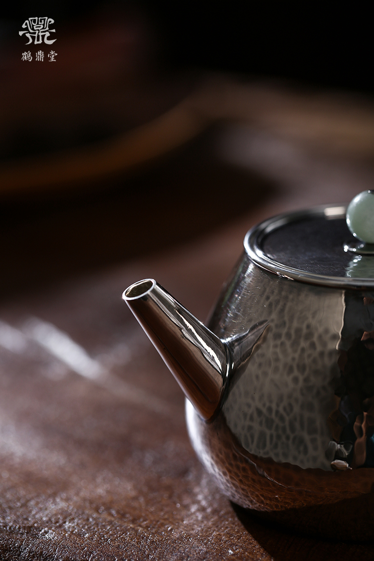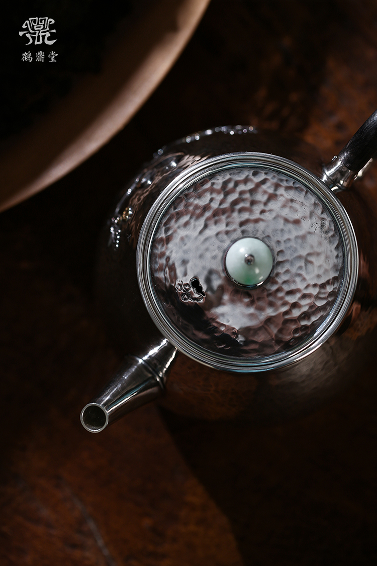 鹤鼎堂银壶闻天系列景山槌目纹錾刻鸟语花香急须(银色)(缺货)